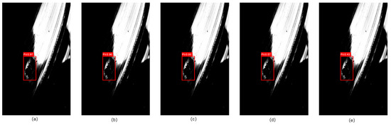 A publicly available RSDDs dataset with similarly small target defects was used for verifying the robustness of the model. The experimental results are presented in Figure 11. The confidence level of YOLOv7-STE is remarkably high, at 0.97. Furthermore, the confidence levels of YOLOv7, YOLOv5, SSD, and Faster-RCNN are 0.90, 0.88, 0.52, and 0.49, respectively.