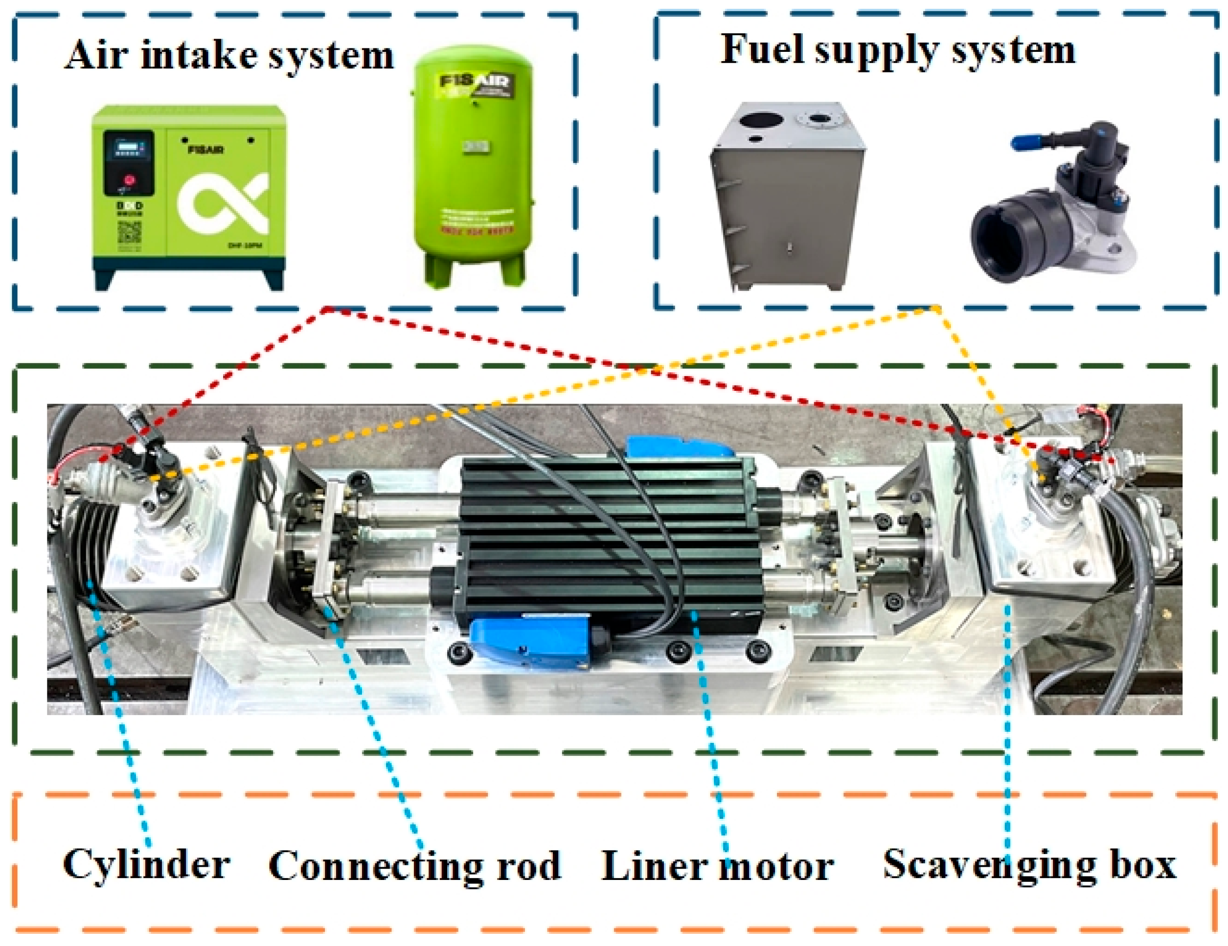 - Liu, C.; Zhang, Z.; Ren, P.; Wei, Y.; Jia, B.; Zuo, Z.; Wang, W.; Feng, H. Application of semi-direct fuel injection system to free piston engine generator for better performance: Simulation approach with validation results. Energy 2024, 298, 131362. [Google Scholar] [CrossRef]