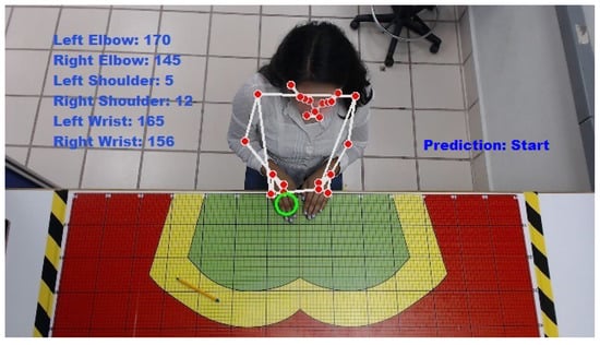 The foundational phase of this methodology involves the systematic capture of video sequences, conducted under controlled lighting conditions to ensure optimal image quality and consistency throughout the experimentation. To achieve this, a high-resolution camera (Logitech C922 Pro HD, Logitech, Lausanne, Switzerland) was strategically placed 1.2 m above a dedicated workstation, at a 45-degree angle to the operator, providing a clear overhead view of torso and arm movements. Lighting was kept constant at 500 lux to minimize shadows and ensure reliable pose estimation.