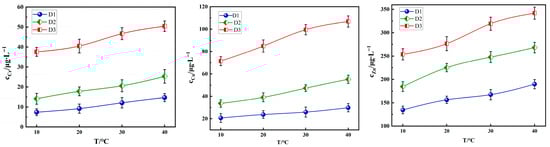 Under fixed conditions (particle size: 0.3–0.6 mm, pH = 3.0, and L/S = 10:1), the leaching amounts of Cr, Cu, and Zn from the three types of tunnel slags show an increasing trend with rising temperatures (Figure 9). An increase in temperature raises the solubility product constants of numerous heavy metal salts, thereby reducing their precipitation tendency and favoring the dissolution and stabilization of metal ions in the aqueous phase. Simultaneously, an elevated temperature significantly accelerates the corrosion reaction rate of minerals, promoting the release of occluded heavy metals. Additionally, higher temperatures also reduce solution viscosity and increase the ion diffusion coefficient, thereby accelerating the migration rate of heavy metal ions from the solid surface or pores into the solution.