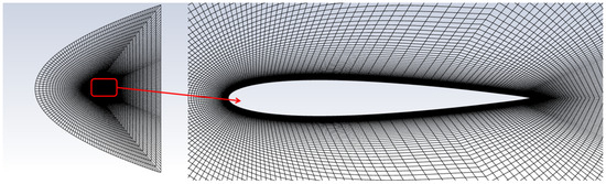 In the far-field region, cell density was gradually reduced with a growth ratio of 1.25 until reaching the outer boundary (15 chord lengths away), ensuring computational efficiency while maintaining solution accuracy in the vicinity of the airfoil. The clustering strategy is illustrated in Figure 4, where fine grids concentrate near the airfoil and gradually transition to coarser cells in the outer field. This refinement strategy provides a balance between accuracy in critical flow regions and overall computational cost, particularly suited for SST turbulence modeling in multiphase CFD simulations.