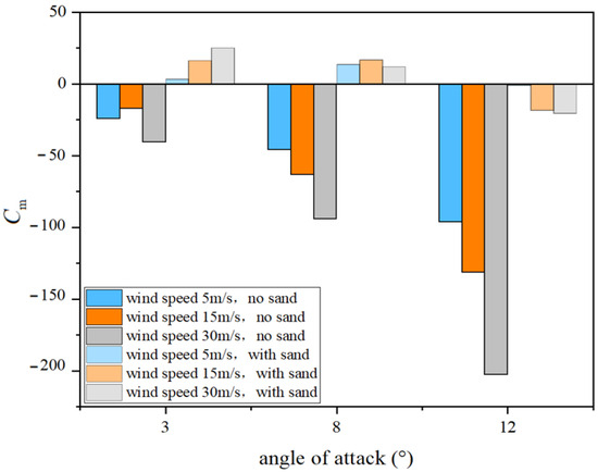 For each combination of wind speed and angle of attack, simulations were performed under both dust-free and dust-laden conditions to evaluate how airborne sand and dust affect aerodynamic performance indicators (the three different concentrations of sand and dust were all obtained through on-site research at Shache Yarkant Airport), including the lift coefficient (), drag coefficient (), and pitching moment coefficient (). The three aerodynamic performance coefficient equations are: