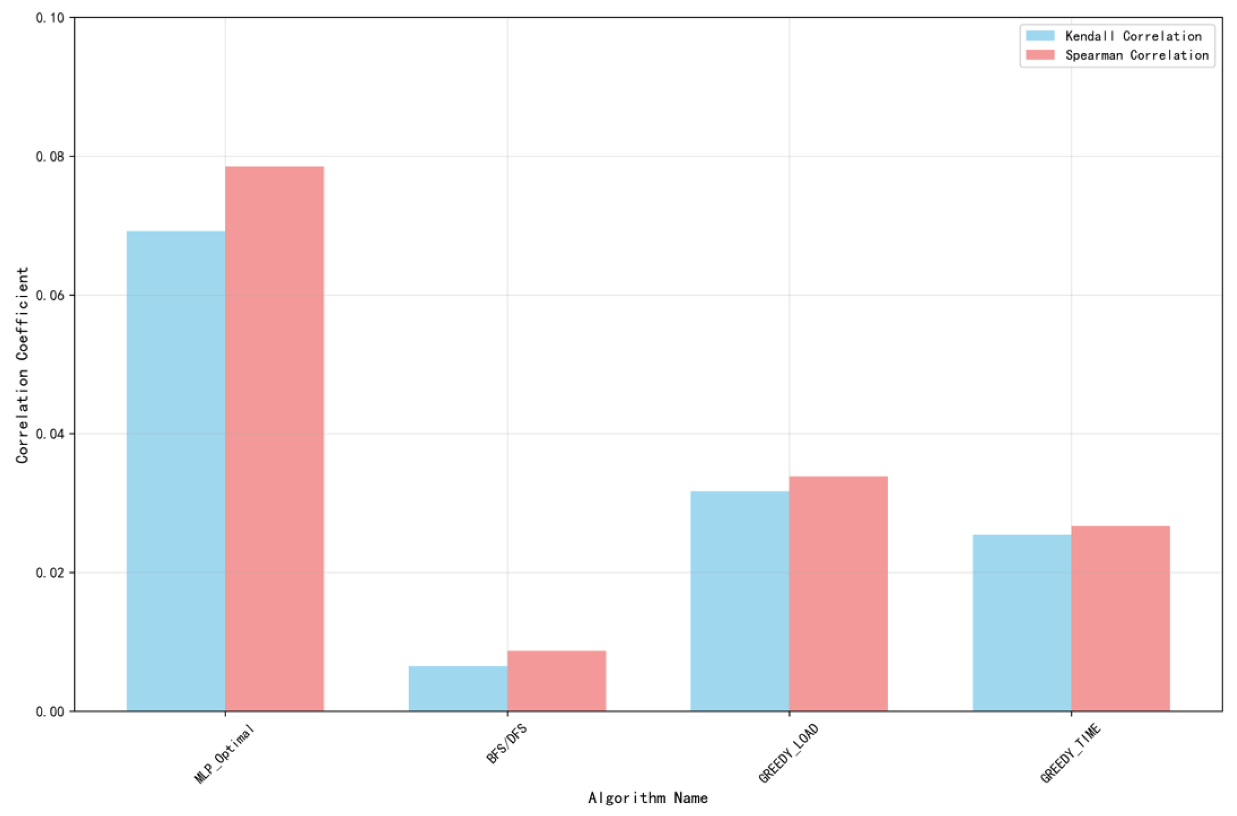 Figure 10. Comparison of Kendall Rank Correlation Coefficients and Spearman’s Rank Correlation Coefficients Across Different Algorithms.