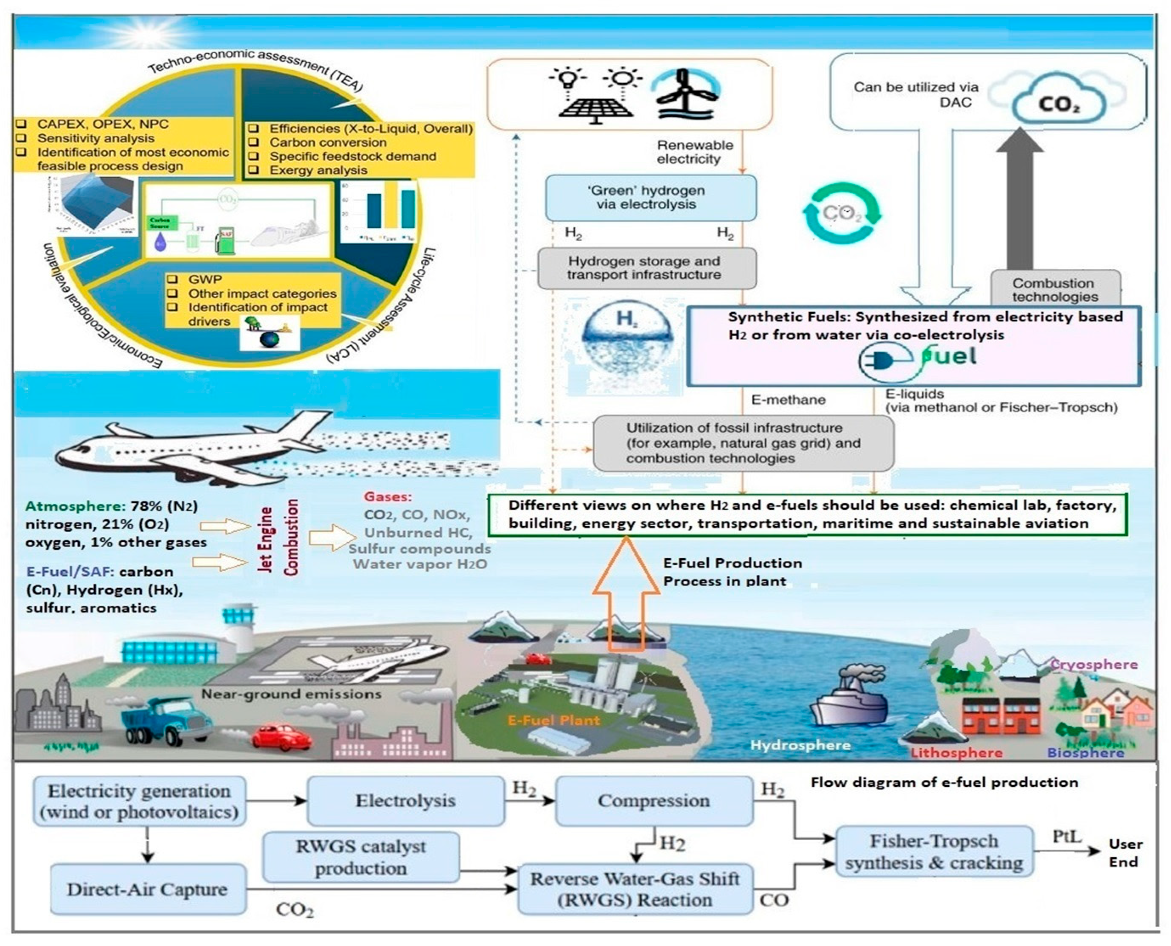- Uddin, M.; Wang, F. Fuelling a clean future: A systematic review of Techno-Economic and Life Cycle assessments in E-Fuel Development. Appl. Sci. 2024, 14, 7321. [Google Scholar] [CrossRef]