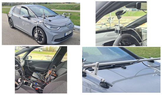 Equipment from the Kistler group (Sindelfingen, Germany) was used in electric vehicles during the experimental research, which enabled the measurement of vehicle yaw rate, angular speed for each wheel, position of the accelerator pedal, vehicle speed, and longitudinal and lateral acceleration (Figure 1). A separate GPS sensor was used to track the movement trajectory.