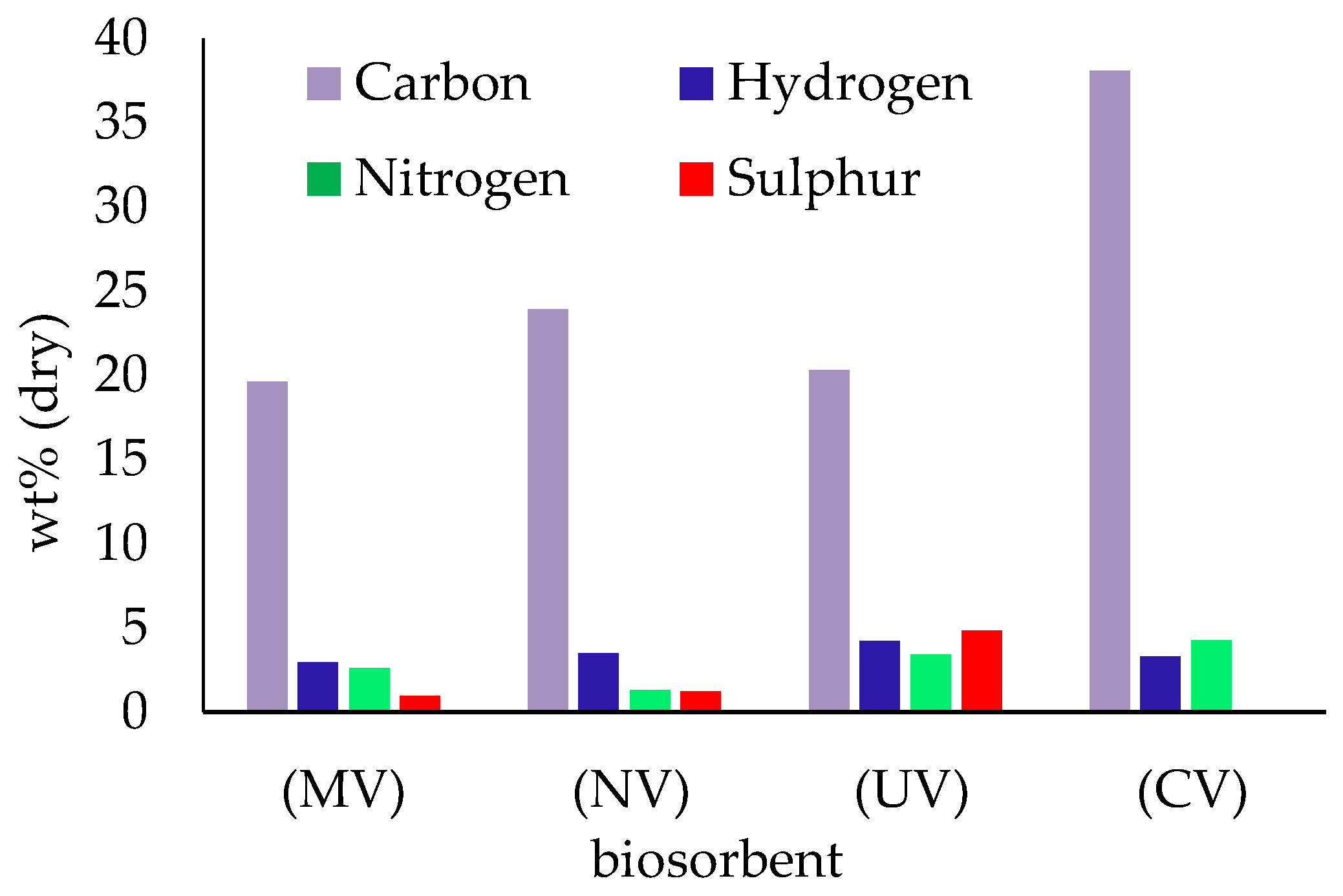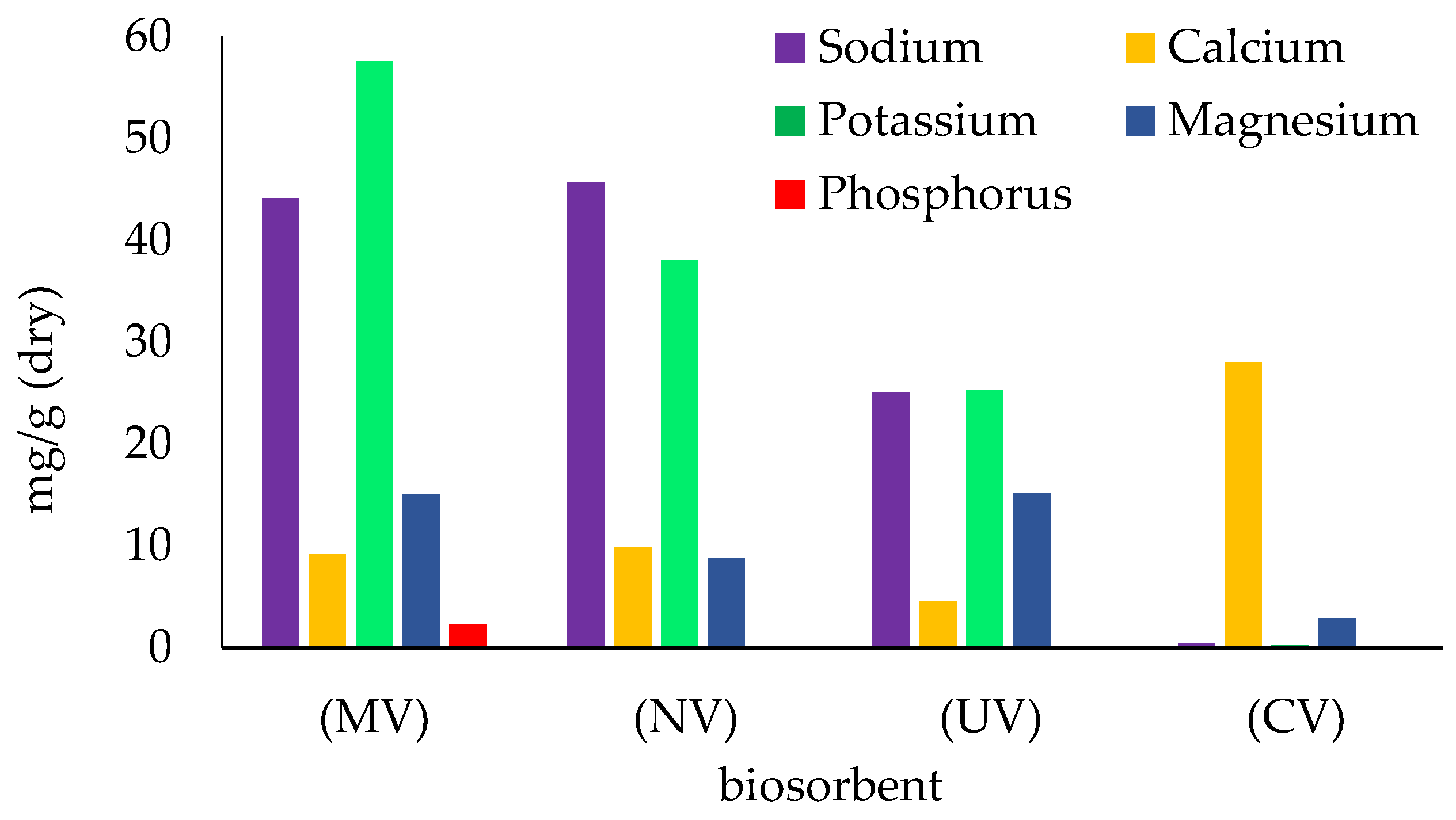- Filote, C.; Ungureanu, G.; Boaventura, R.; Santos, S.; Volf, I.; Botelho, C. Green macroalgae from the Romanian coast of Black Sea: Physico-chemical characterization and future perspectives on their use as metal anions biosorbents. Process Saf. Environ. Prot. 2017, 108, 34–43. [Google Scholar] [CrossRef]