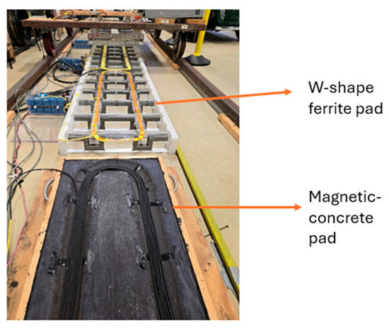 Magnetic concrete pad with W–I shaped ferrite pads used in the DWPT prototype testbed.
