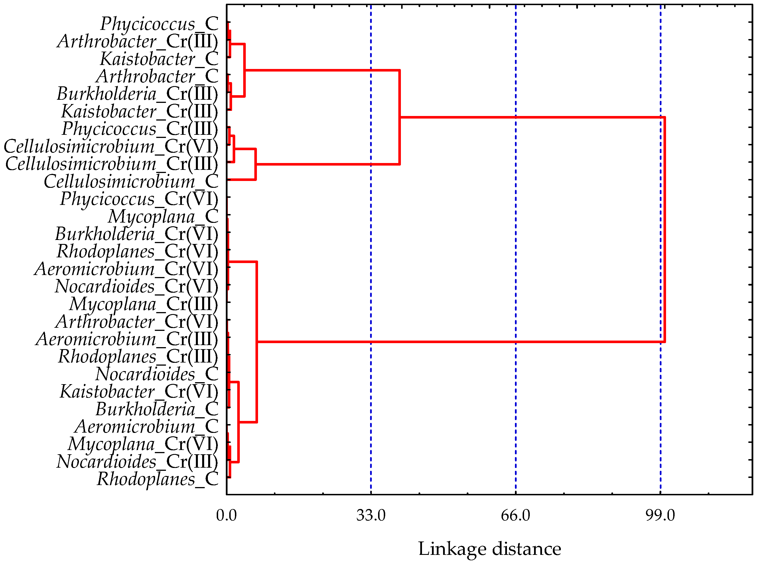 3.1. Effect of Cr(III) and Cr(VI) on the Structure of Bacterial Communities in Soil