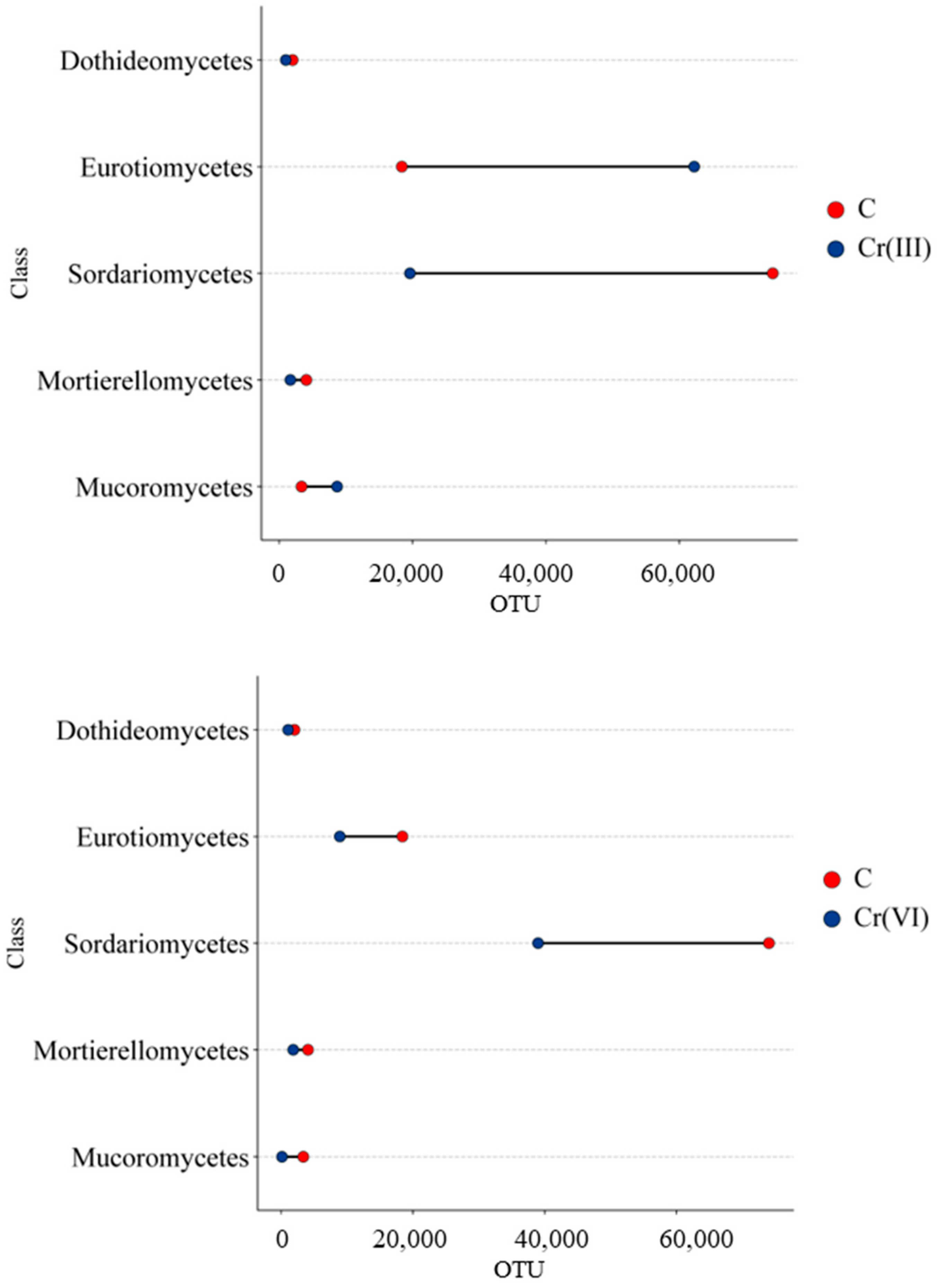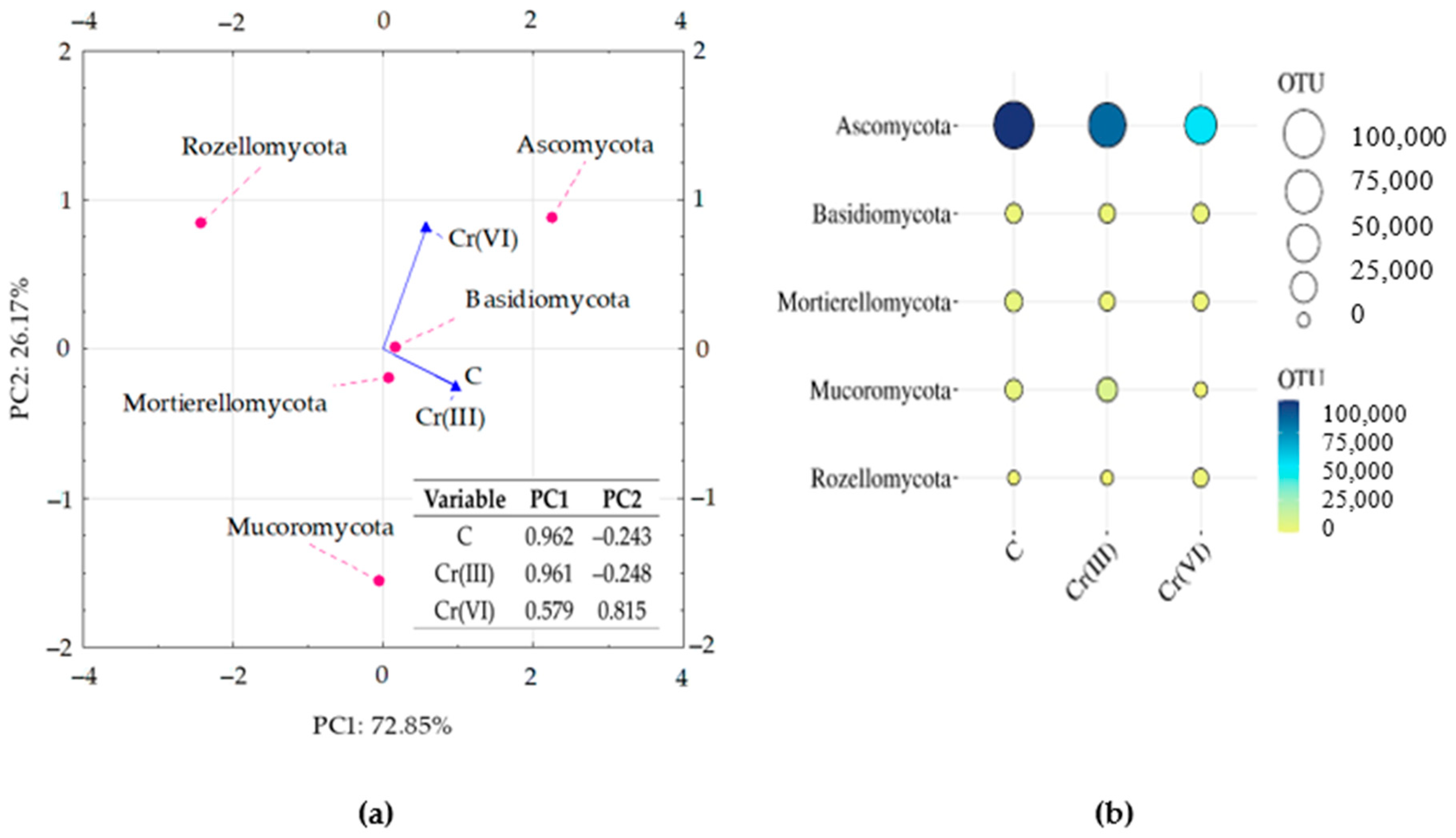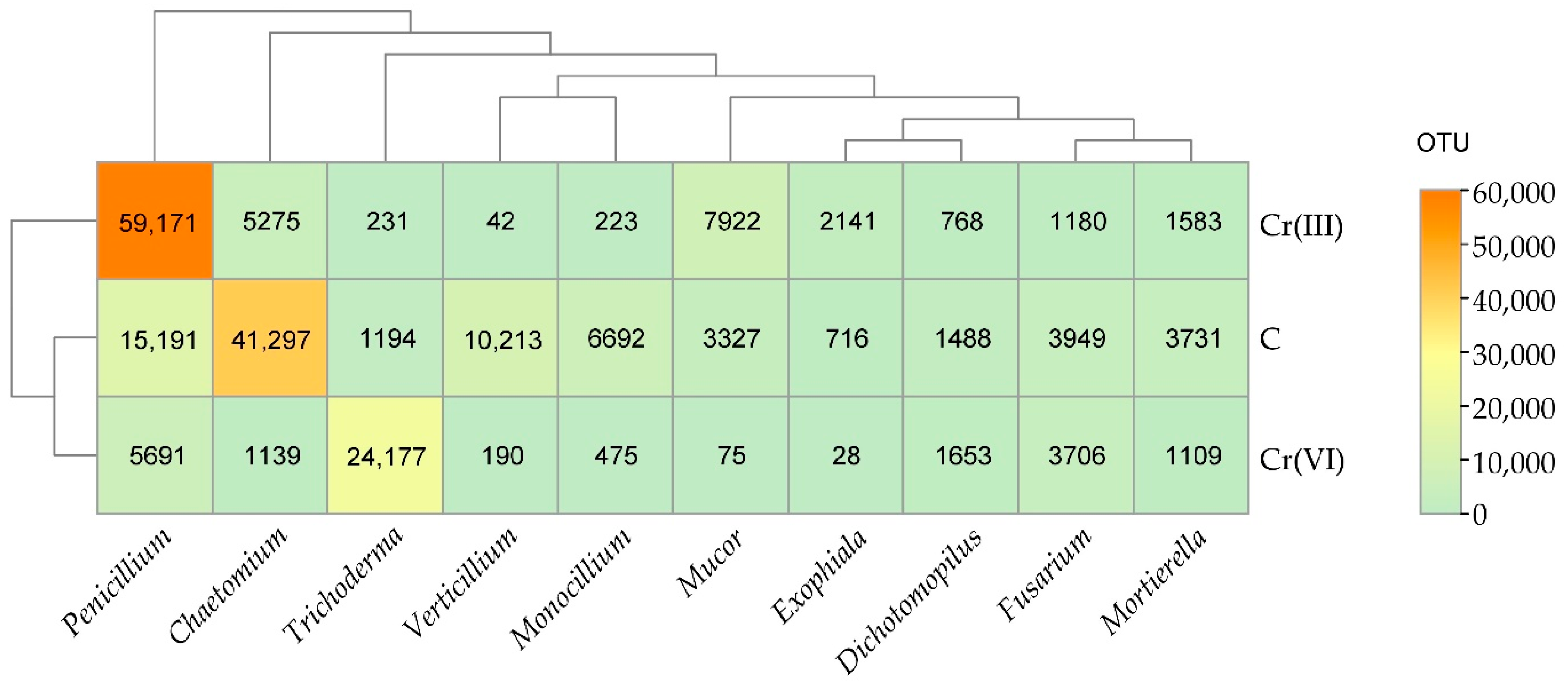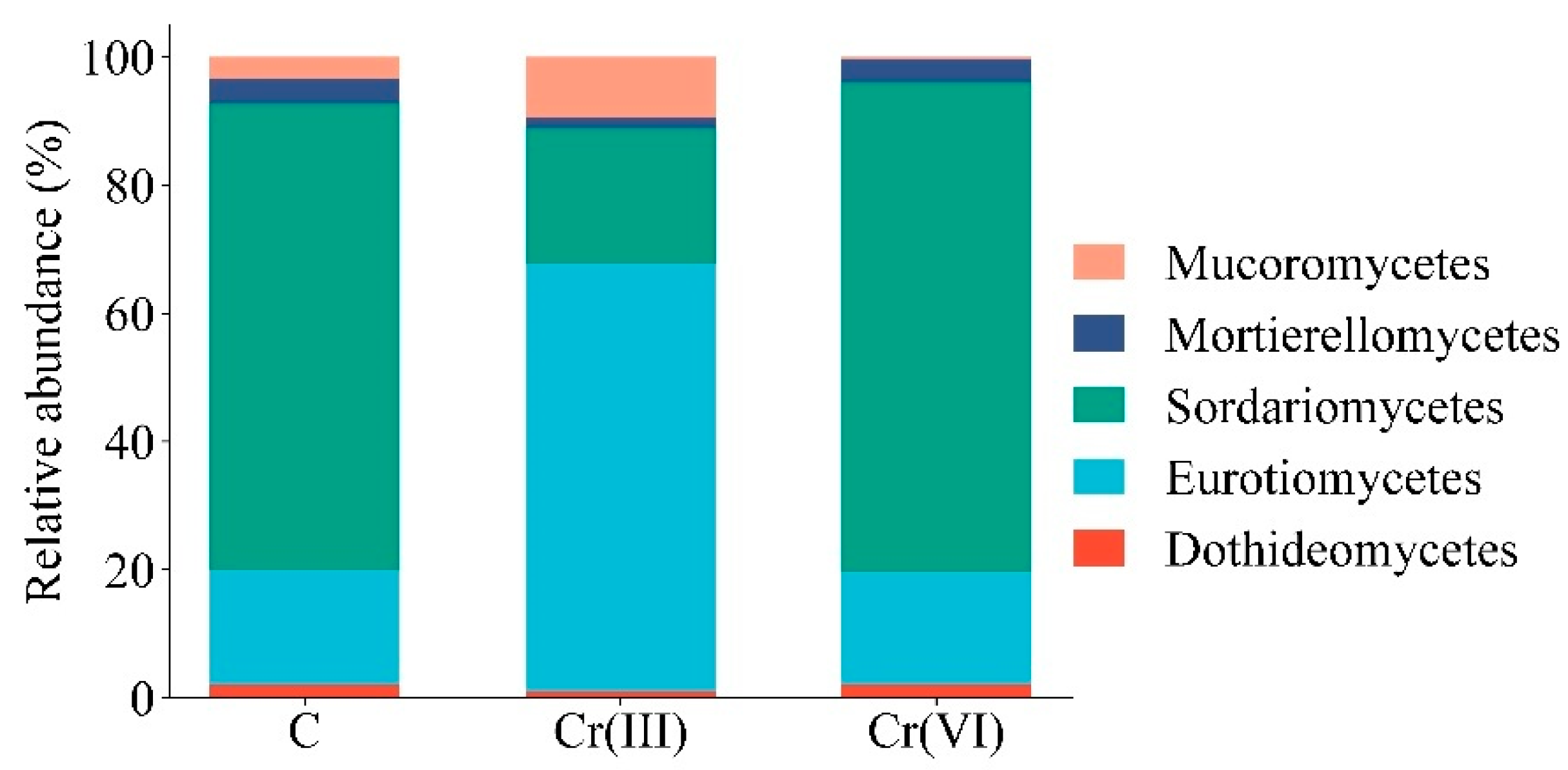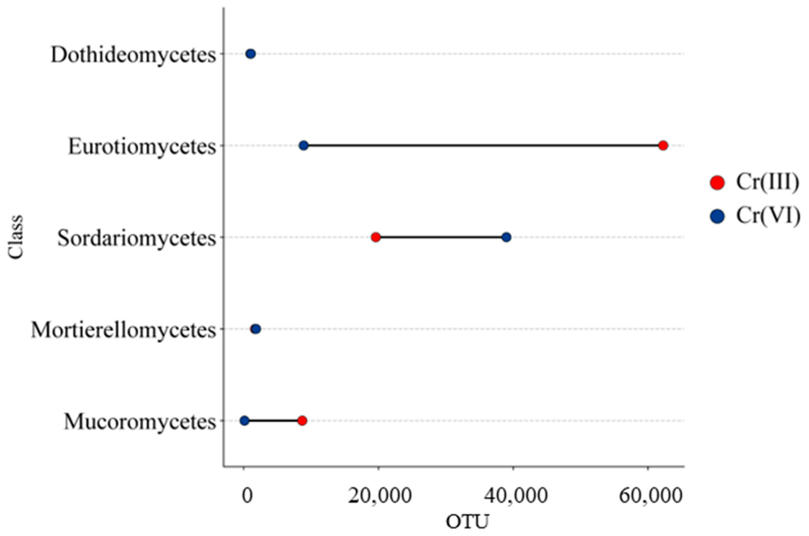 3.2. Effect of Cr(III) and Cr(VI) on the Structure of Soil Fungal Communities