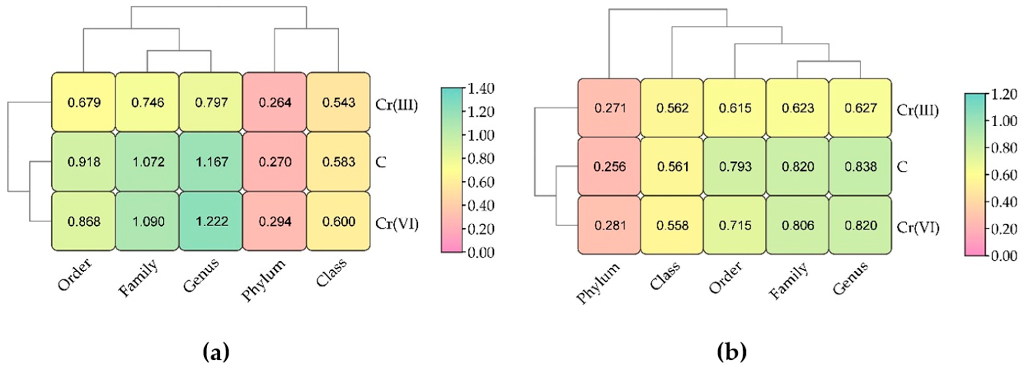 - Ji, C.; Huang, J.; Li, J.; Zhang, X.; Yang, G.; Ma, Y.; Hao, Z.; Zhang, X.; Chen, B. Deciphering the impacts of chromium contamination on soil bacterial communities: A comparative analysis across various soil types. J. Environ. Manag. 2023, 348, 119335. [Google Scholar] [CrossRef]