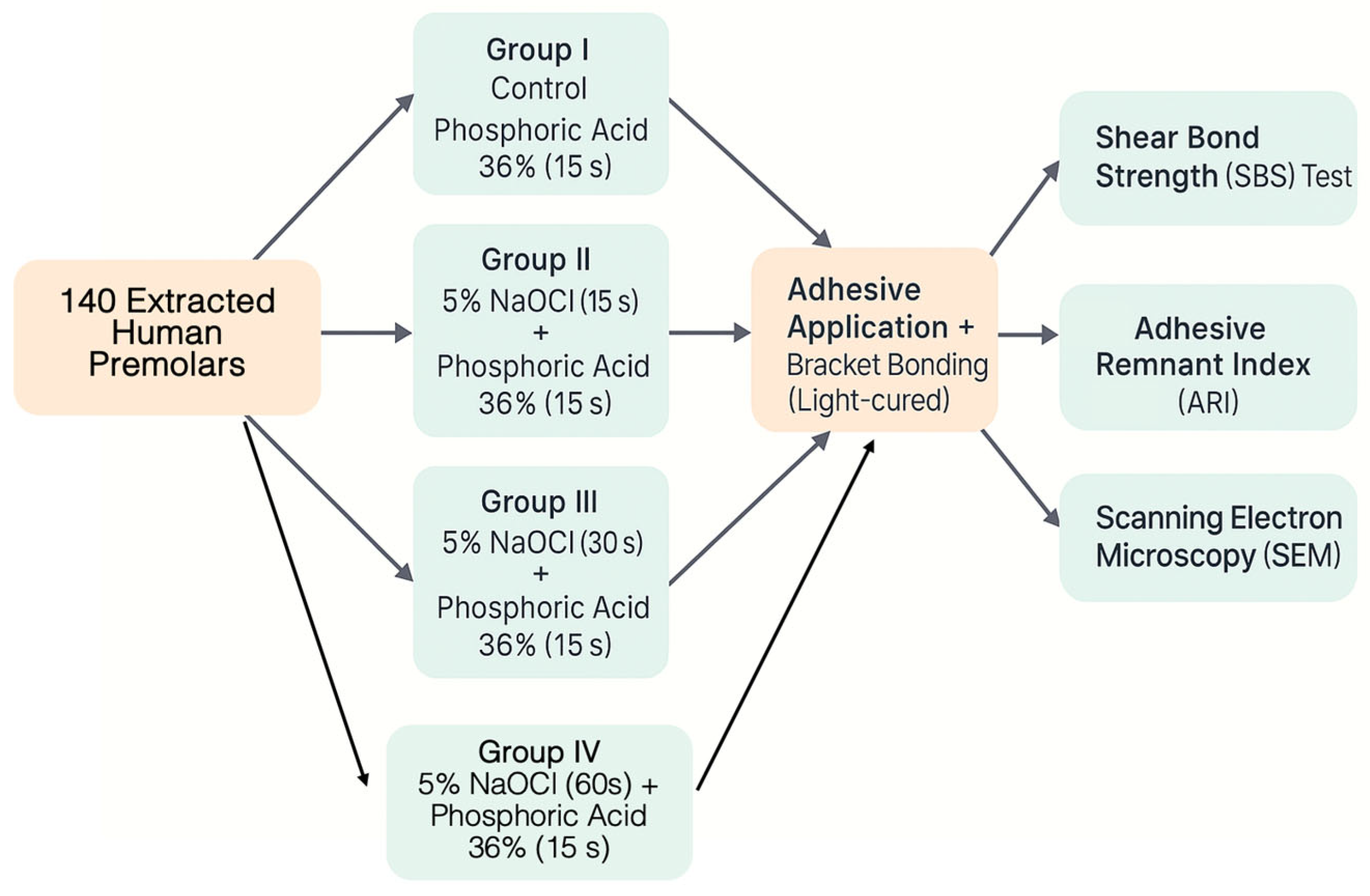 - Group IV: 5% NaOCl (60 s) + phosphoric acid etching (n = 30).
