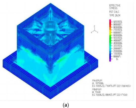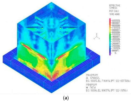 Figure 16 shows that the location of the CLSS’s maximum principal stress is consistent with that observed when the friction coefficient is 0.4, i.e., at the CLSS’s external wall panel, with a peak stress of 1.38 MPa.