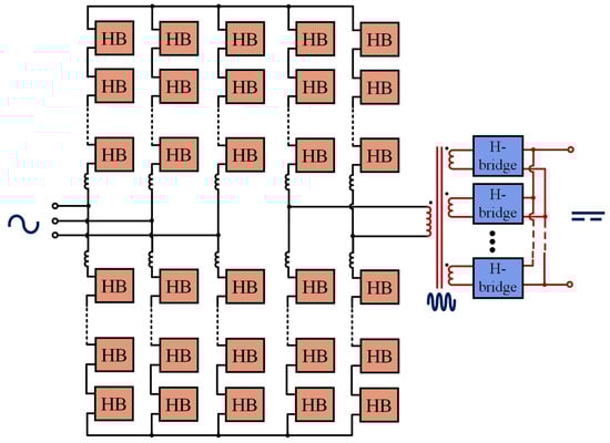 - Nirea, H.L.; Zhang, J.; Zhou, J.; Shi, G.; Luo, J.; Chen, G. A Novel Cascaded Multilevel Inverter and Modular Multilevel DC Transformer-Based Solid-State Transformer for Distribution Networks. In Proceedings of the 2025 IEEE 16th International Symposium on Power Electronics for Distributed Generation Systems (PEDG), Nanjing, China, 22–25 June 2025; pp. 73–78. [Google Scholar] [CrossRef]