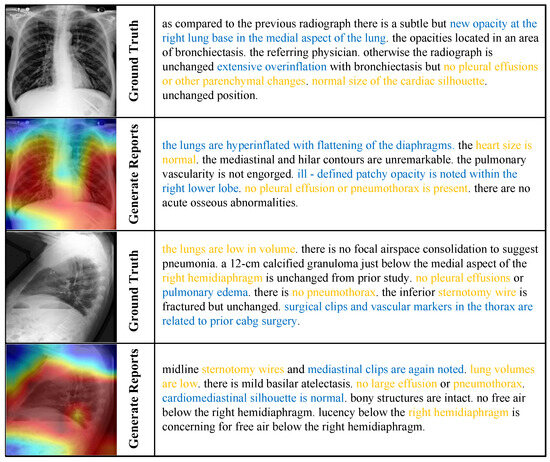 - Liu, F.; Wu, X.; Ge, S.; Fan, W.; Zou, Y. Exploring and distilling posterior and prior knowledge for radiology report generation. In Proceedings of the IEEE/CVF Conference on Computer Vision and Pattern Recognition, Nashville, TN, USA, 20–25 June 2021; pp. 13753–13762. [Google Scholar]