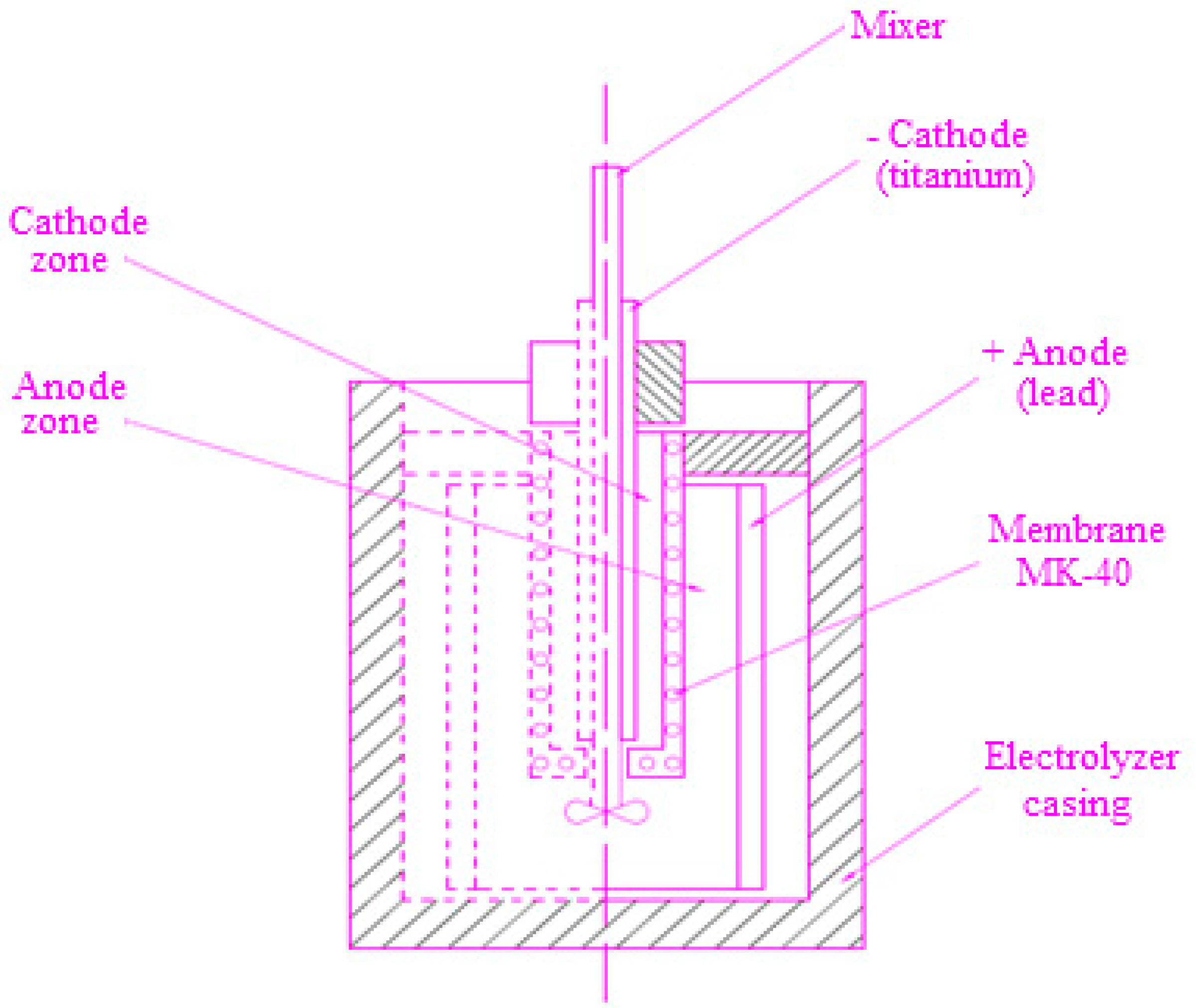 A special electrolyzer was designed for conducting the electrochemical oxidation process (