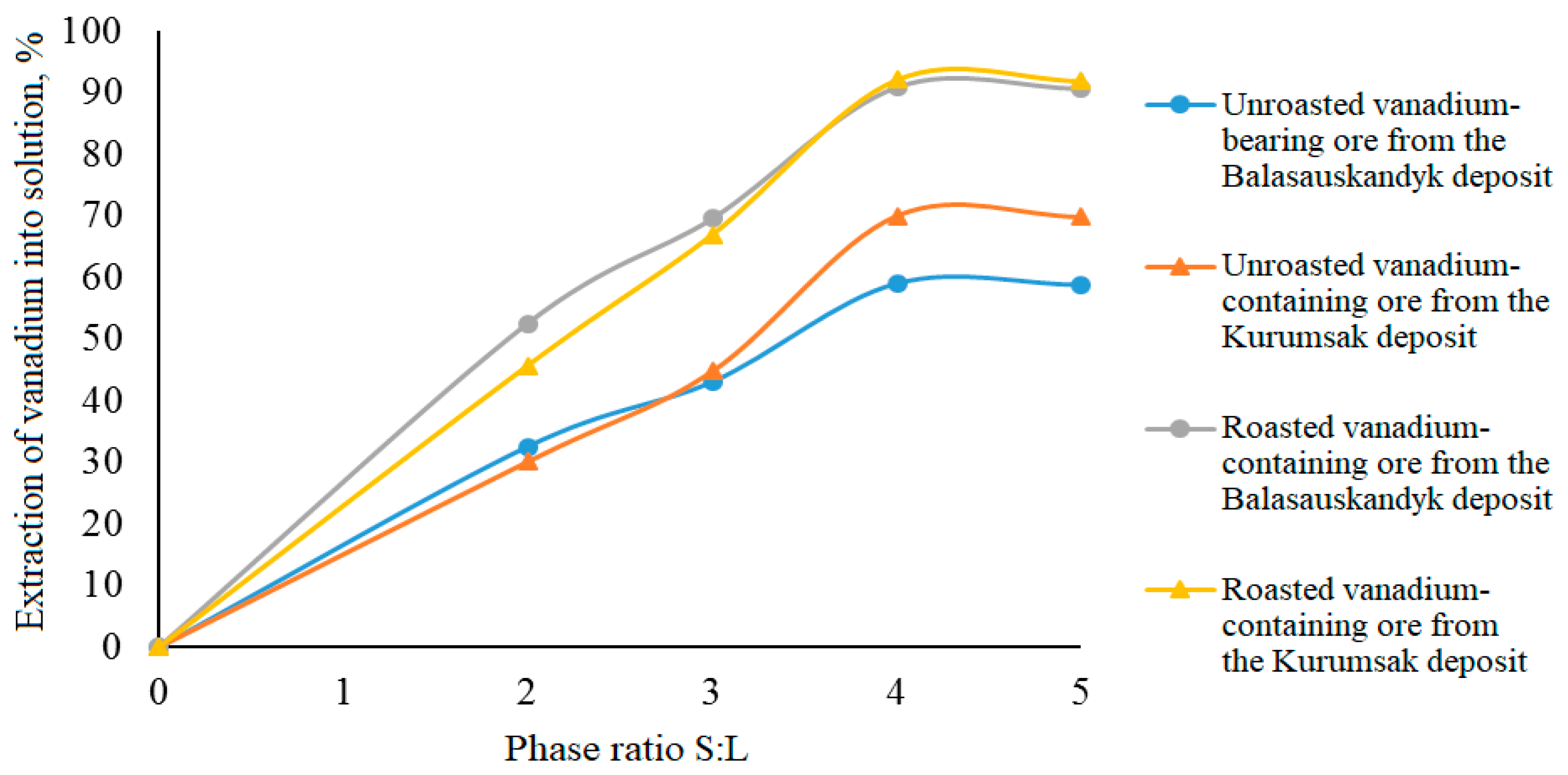 Effect of solid-to-liquid phase ratio on vanadium extraction into solution