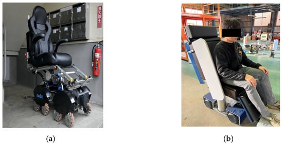 Omnidirectional autonomous electric wheelchair. (a) Fully autonomous electric wheelchair; (b) state of boarding.