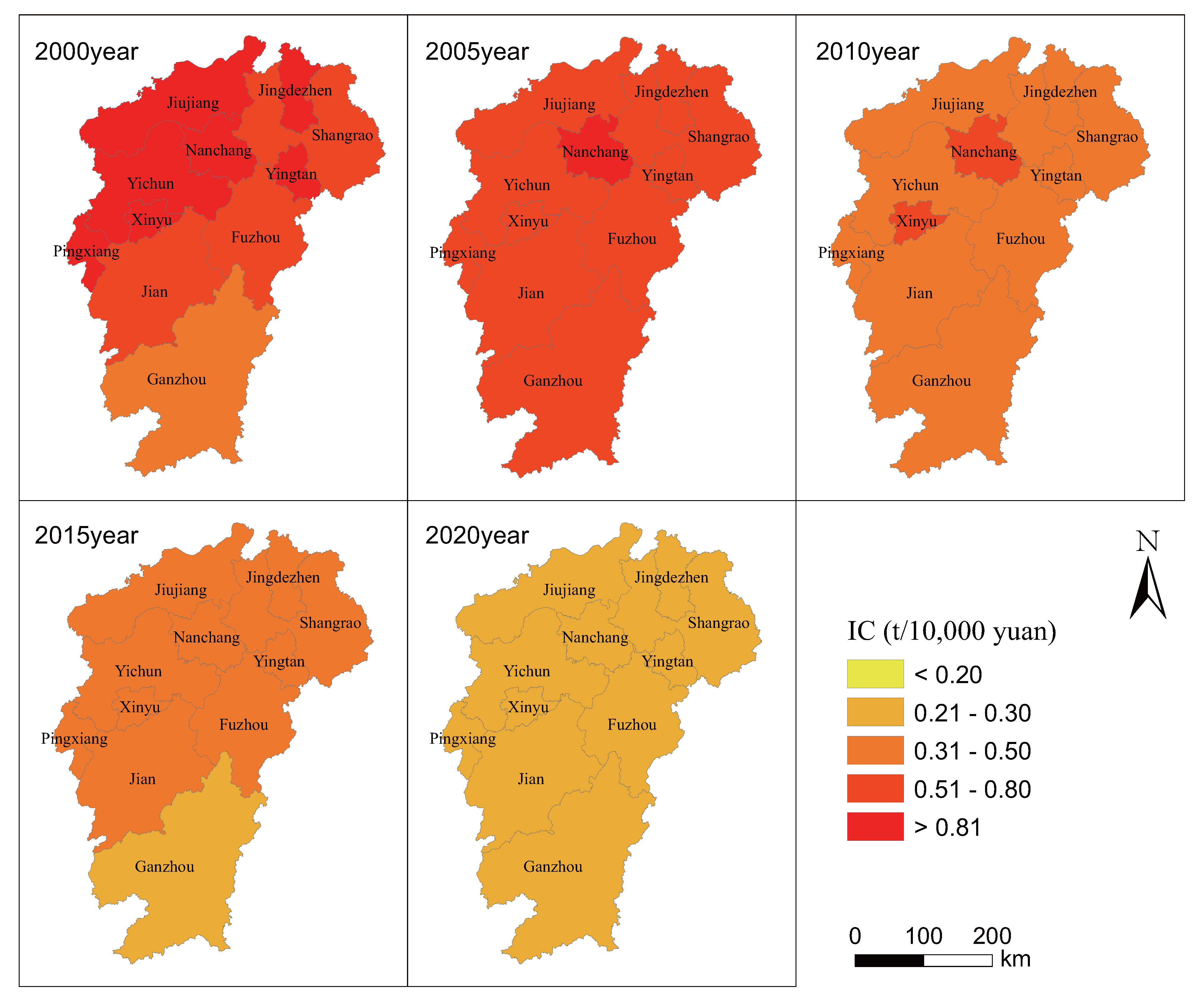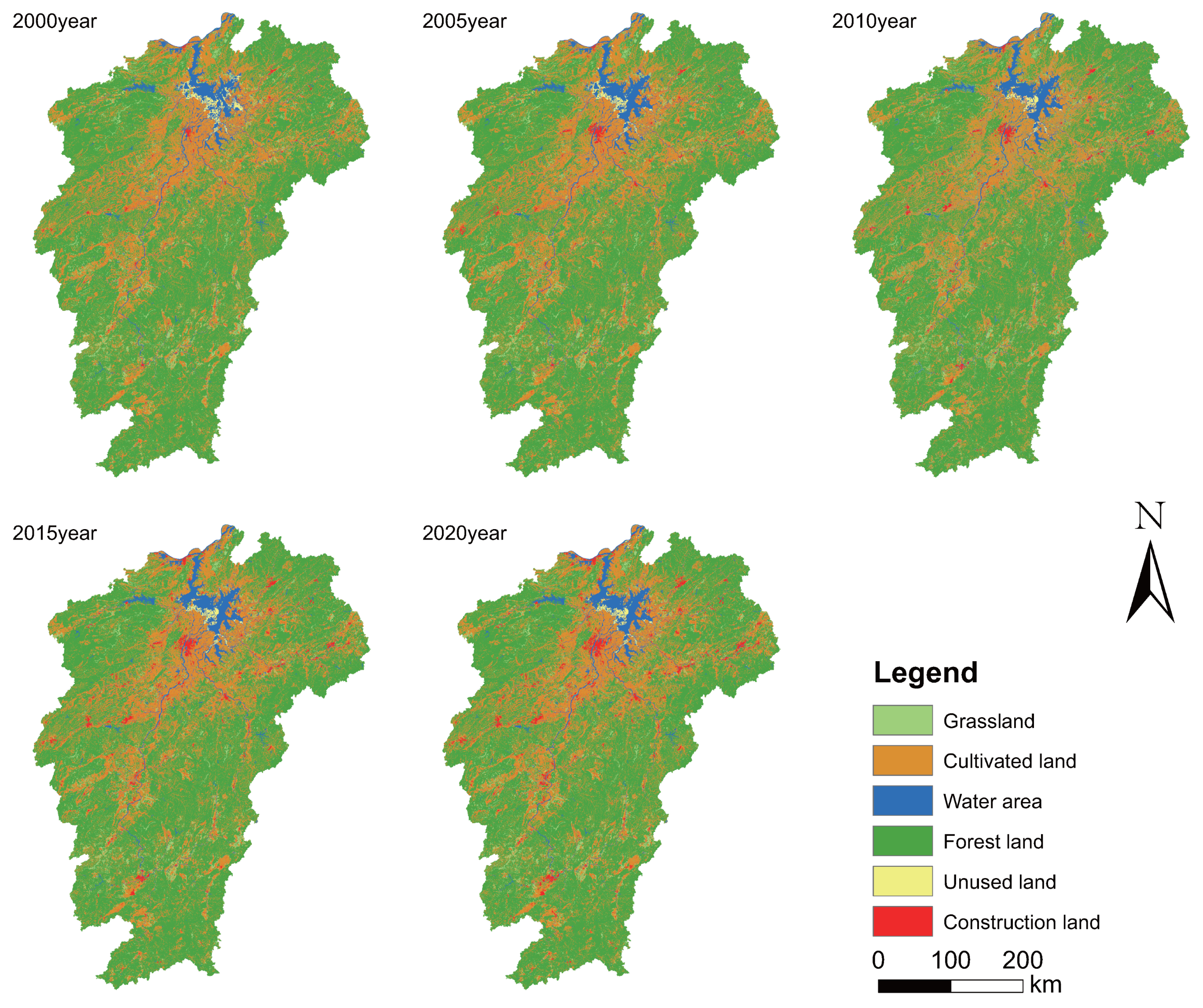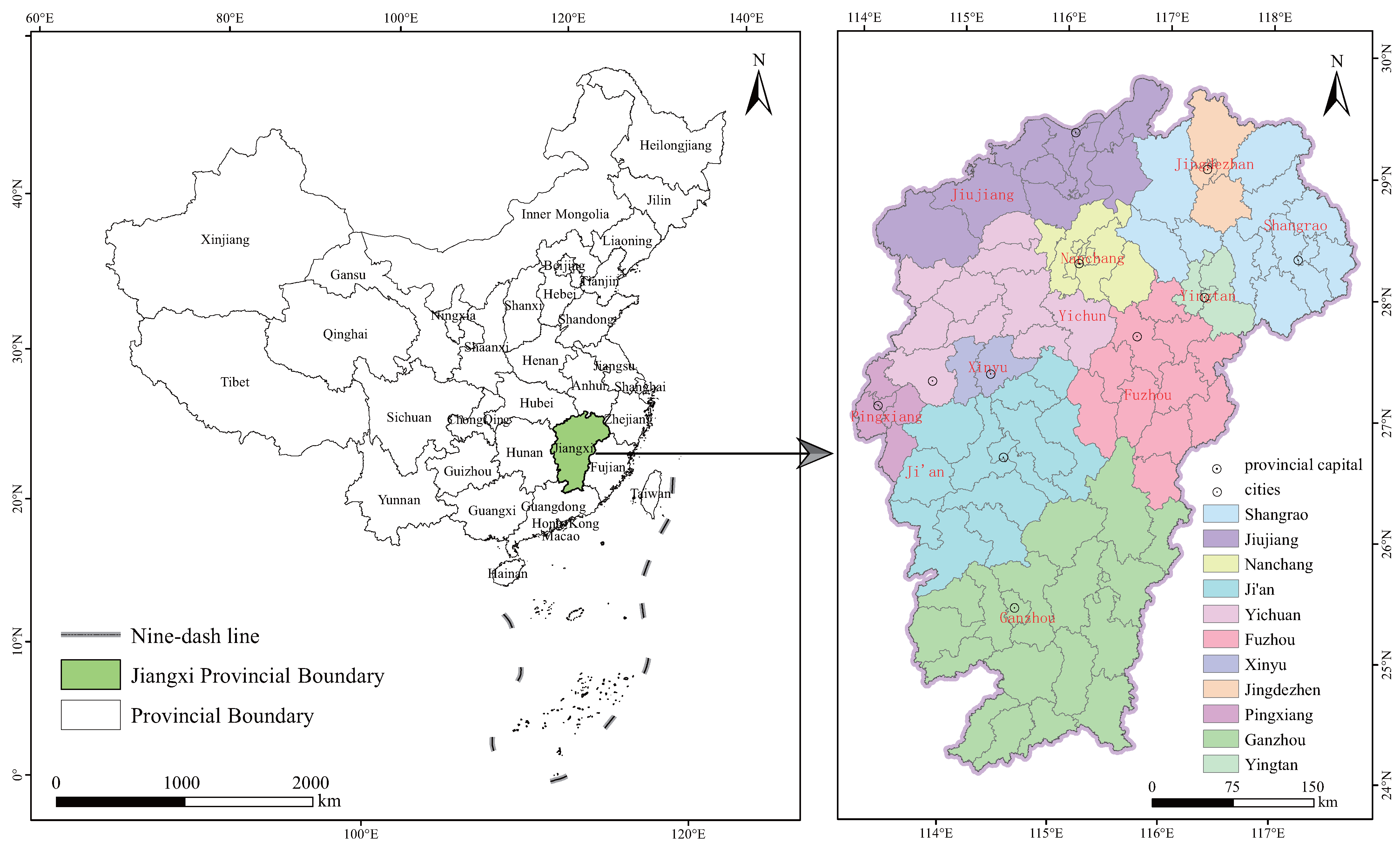 The aforementioned models collectively serve the objectives of this study: to reveal the spatiotemporal evolution of LUCEs, identify key driving factors, and assess their decoupling relationship with economic growth. Through multi-model collaborative analysis, this study provides a scientific basis for Jiangxi Province to formulate differentiated emission reduction strategies, optimize territorial spatial planning, and support the achievement of the “dual carbon” goals.