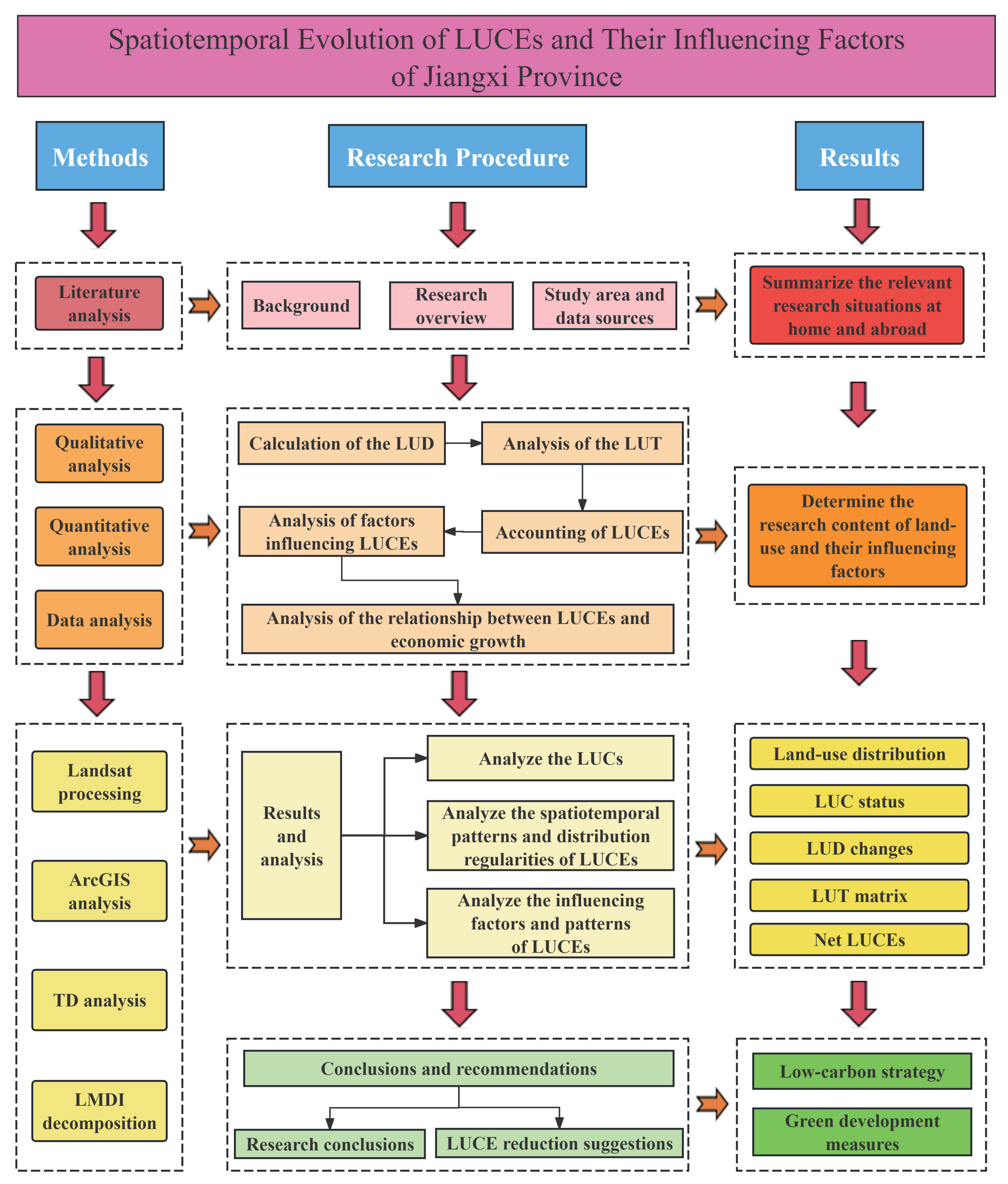 In this study, LUCEs in Jiangxi Province are taken as the research object. The research content and influencing factors of LUCEs are qualitatively analyzed, followed by quantitative analysis. Based on the results of the analysis, effective policy recommendations are proposed. The research framework is shown in