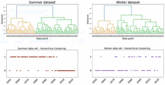 Clustering results based on mean temperature values for summer and winter months, performed using hierarchical clustering.