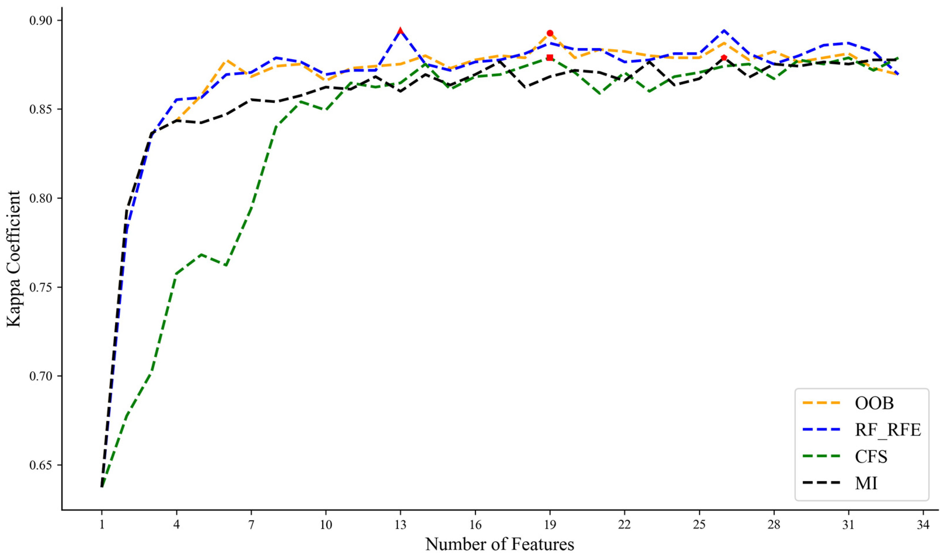 3.2. Classification Based on Multi-Spectral Bands and Preferred Bands