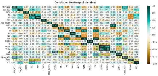 The results highlight the critical role of anthropogenic indicators (e.g., PD, road networks, NTL), topographic factors (DEM), and air pollution variables (NO2 from Sentinel-5P and GEOS-CF) in driving model performance, while meteorological factors contributed secondarily. In future studies, we will expand the data pool by incorporating traffic data and various atmospheric datasets and will perform more comprehensive analyses using deep learning models to enhance model accuracy.