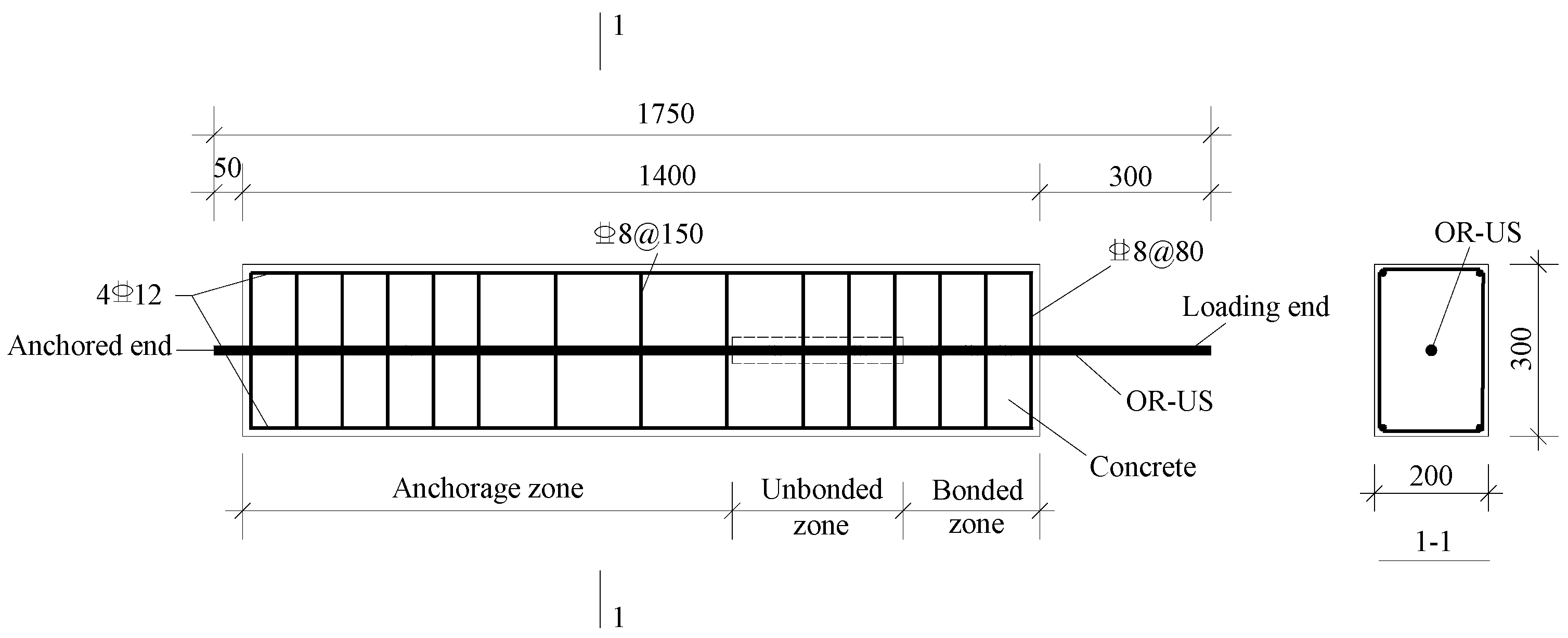 Due to the presence of the unbonded segment in OR-US, the bond–slip model of ordinary rebar could not be directly adopted. Based on the test results, this paper established the bond–slip model of OR-US by considering the influence of unbonded length, rebar strength, rebar diameter, and concrete strength.