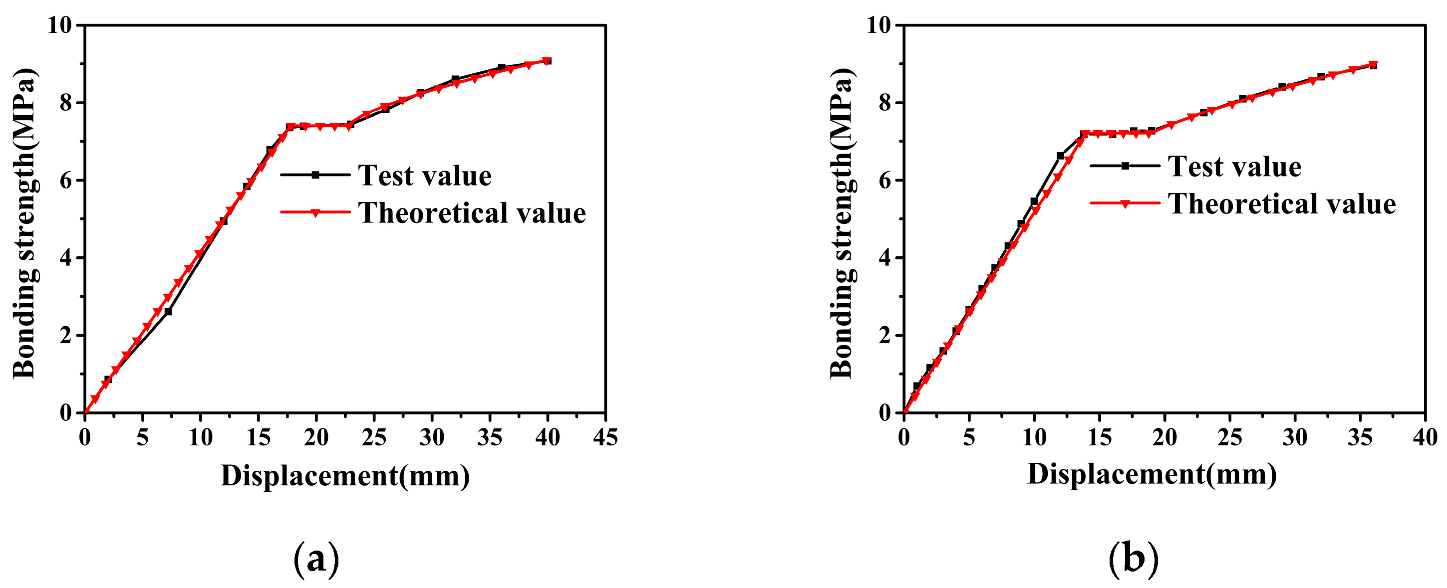 Figure 14 that the test value of the second point of HQ differed significantly from the theoretical value, which might be caused by the testing equipment. Except for the second point of HQ, the errors of other bond–slip models were within 10%, which indicated that the theoretical values were in good agreement with the test values; therefore, the bond–slip model proposed in this paper could better reflect the bond–slip characteristics of OR-US.