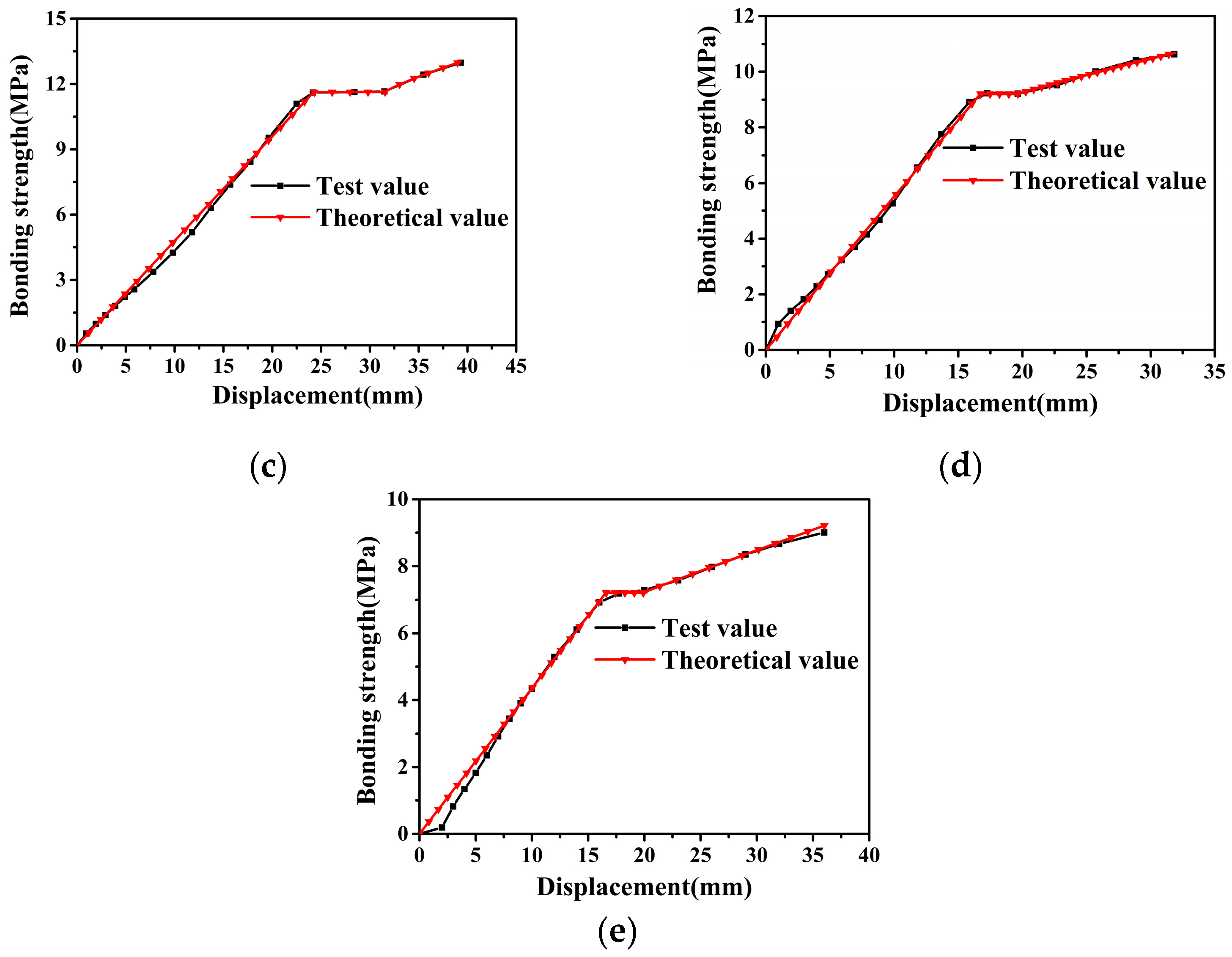 Table 7 into formula (3) to (7), the bond–slip theoretical curves of all specimens could be obtained, which were compared with the test curve, and the results are shown in