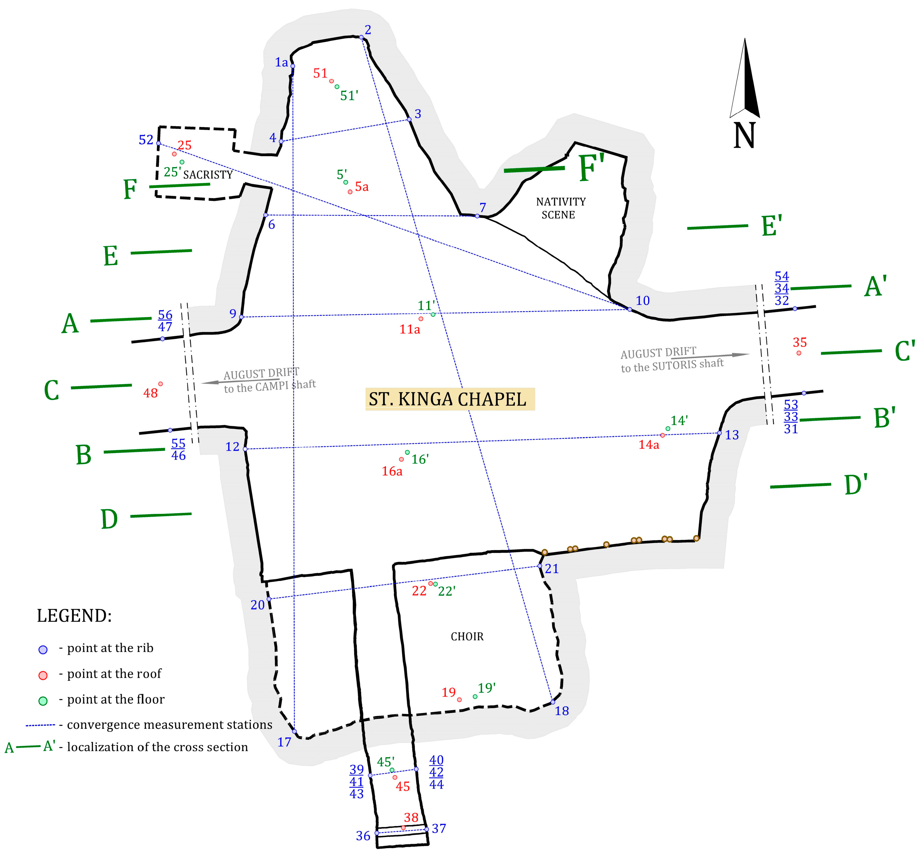 Due to its unique historical and natural values, the Bochnia Salt Mine is under constant care and underground safety works are still in progress. As mentioned before, the fundamental component of this activity is the geodetic monitoring, which has been carried out in underground excavations for decades. The results of these measurements are supervised by the District Mining Office in Cracow (a regional representative of the State Mining Authority). They are necessary for several reasons.
