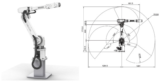 Next, kinematic and dynamic analyses are performed on the SMLR6Z1420/E robot. Its detailed structure and range of motion are shown in