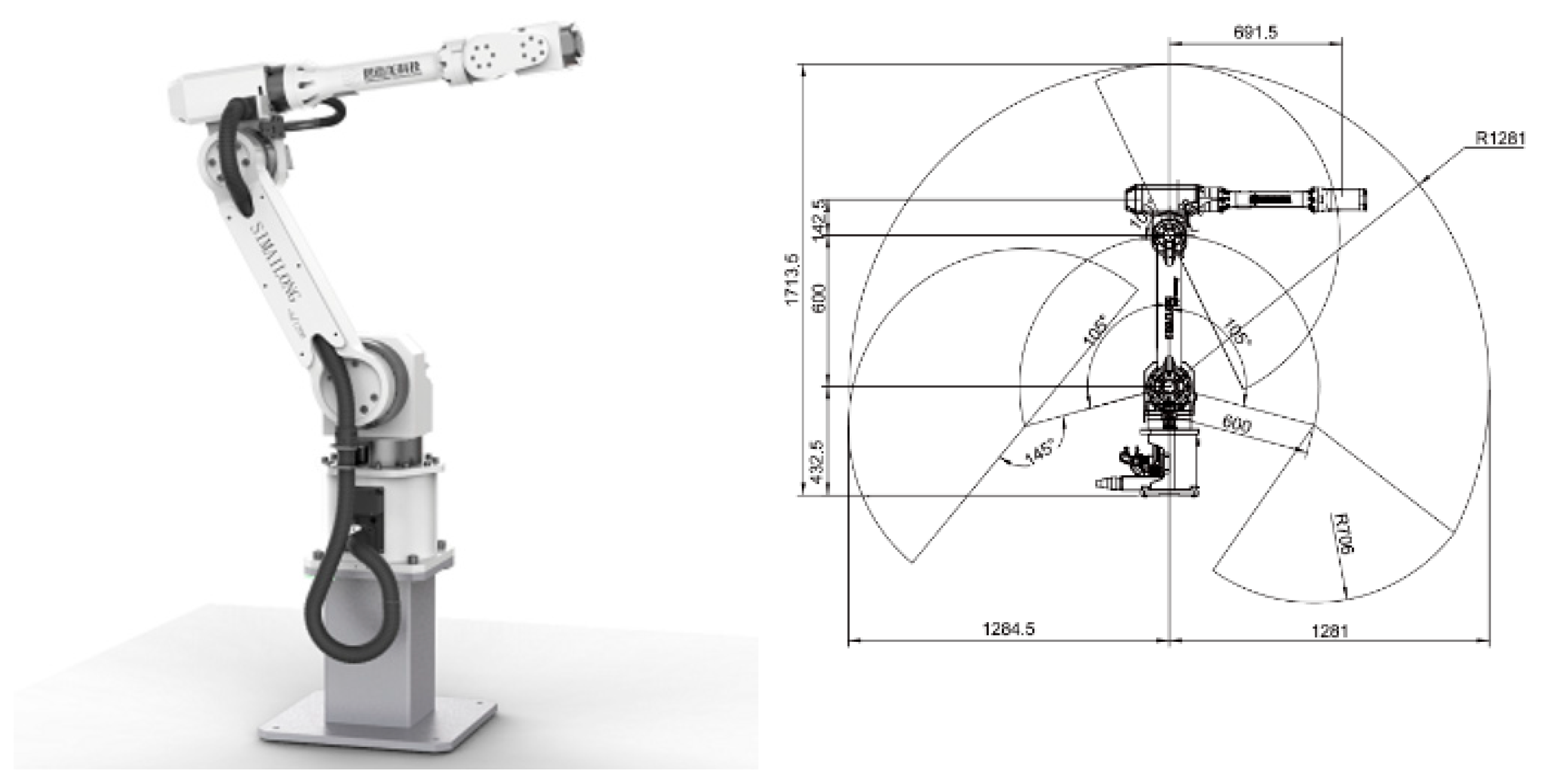 Under this layout, the robot’s workspace fully covers all task points while maintaining a safe distance from the surrounding equipment.