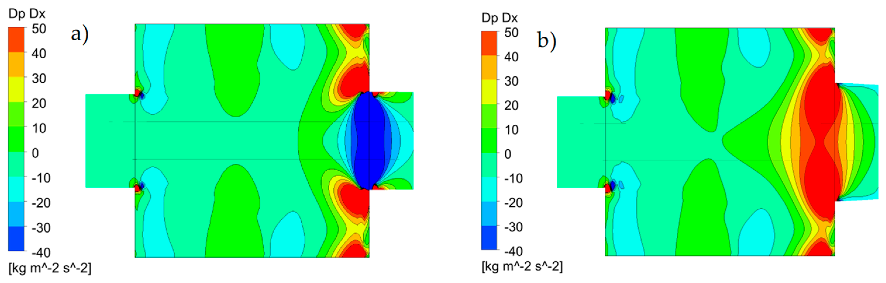 3.2. The Convergent Nozzle Influence on the Flow Development