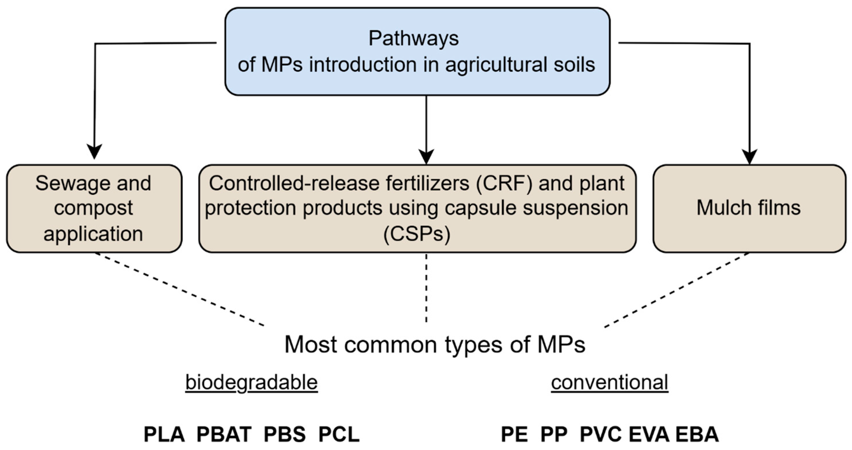 To solve the first two problems, we analyzed sources of MPs (Figure 3). MPs penetrate agricultural soils in different ways, the main ones are as follows: