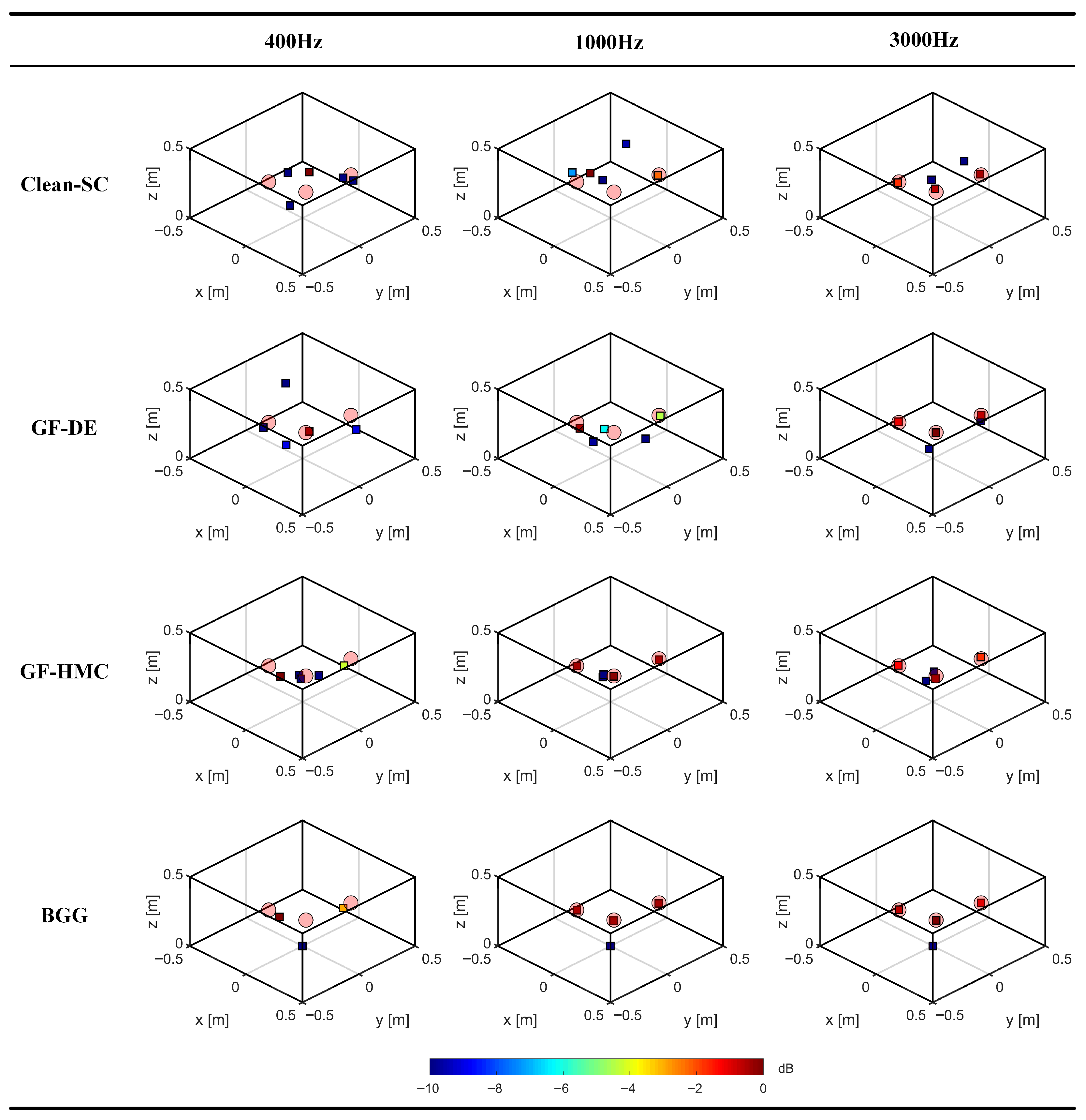 - Zhai, Q.; Ning, F.; Deng, Z.; Hou, H.; Li, J.; Wei, J.; Li, B. A Grid-Free Global Optimization Algorithm for Sound Sources Localization in Three-Dimensional Reverberant Environments. Mech. Syst. Signal Process. 2023, 188, 109999. [Google Scholar] [CrossRef]