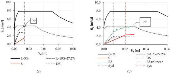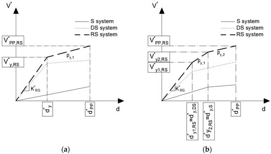 Notably, if S is a linear or elastic—plastic system, a bilinear or trilinear RS capacity curve is obtained, respectively. In addition, in the case of S system nonlinear behavior, the DS system should be designed to yield earlier than S, thus providing the main energy dissipation contribution.