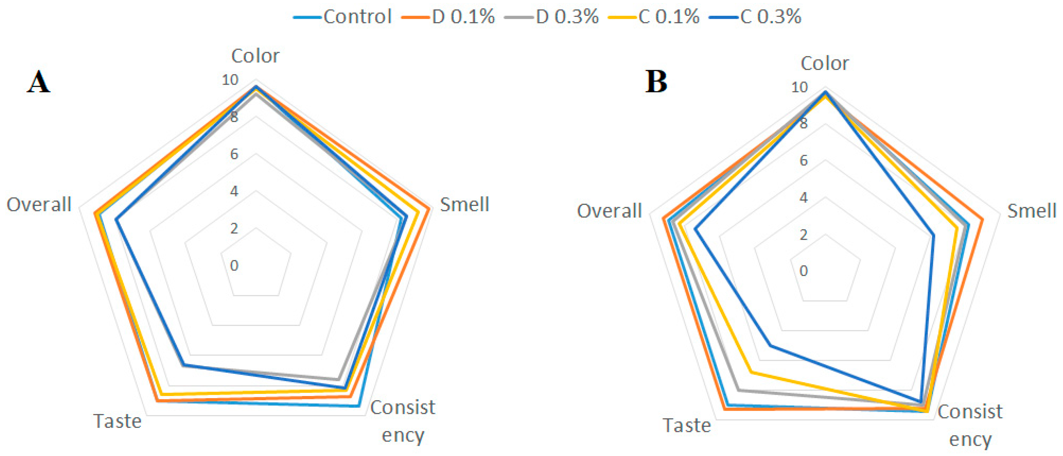- Mateescu, C.; Duta, D.; Onisei, T.; Şerbancea, F.; Utoiu, C.; Manolache, F.A.; Dune, A. Flavored cream honey—A healthy food choice for consumers. In Proceedings of the ISB-INMA TEH 2020 International Symposium, Bucharest, Romania, 30 October 2020; pp. 236–245. [Google Scholar]