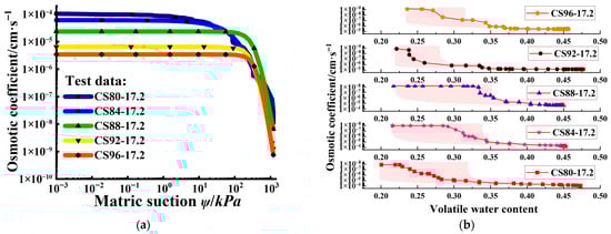 Relationship curve between initial compaction degree and permeability coefficient. (a) Relationship between Matric Suction and Permeability Coefficient. (b) Relationship between volumetric water content and permeability coefficient.