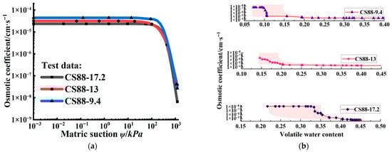 Relationship curve between initial water content and permeability coefficient. (a) Relationship between matrix suction and permeability coefficient (b) Relationship between volumetric water content and permeability coefficient.