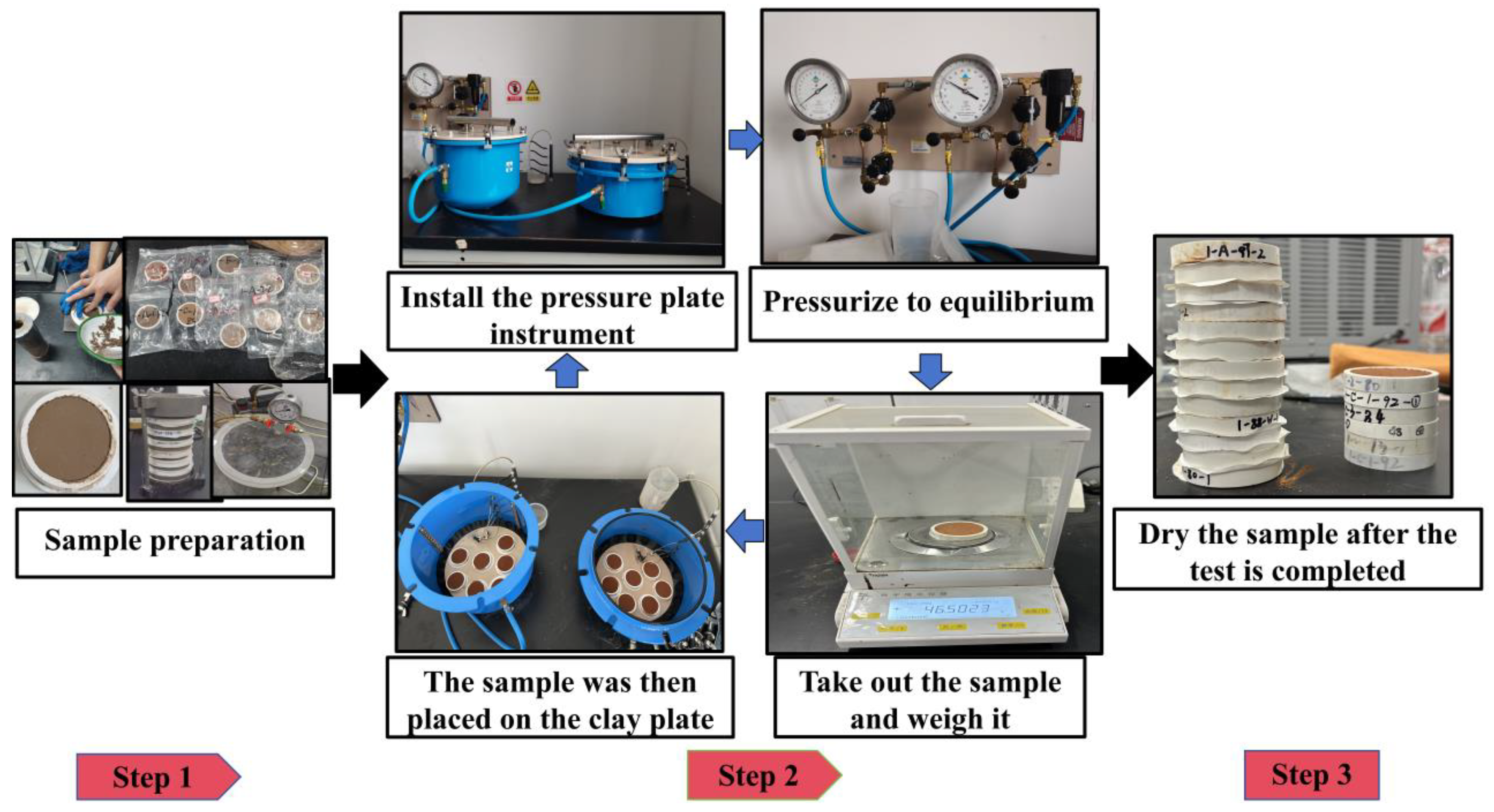 Therefore, in engineering practices (e.g., foundation treatment and stability mitigation) and agricultural production activities within collapsible loess regions, research focused on the water retention and permeability characteristics of loess holds significant theoretical significance and practical application value. The soil water characteristic curve (SWCC) is a core tool for characterizing the water retention properties of unsaturated loess. It describes the relationship between soil water content and matric suction within the soil and serves as a critical parameter that must be considered in the study of unsaturated soils [