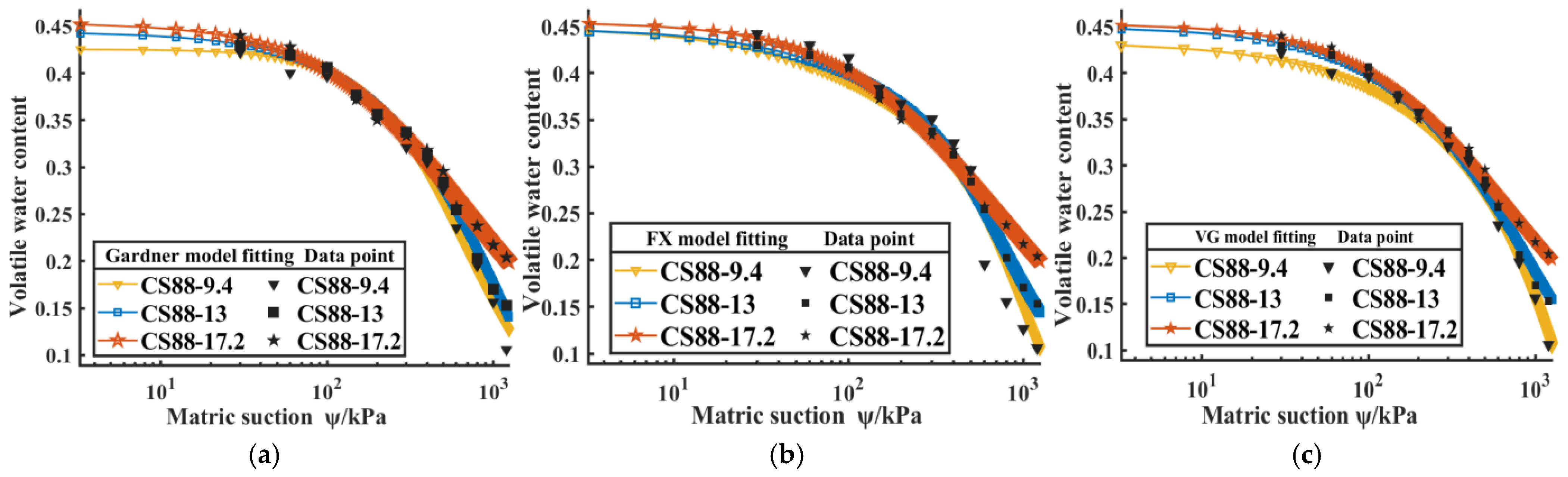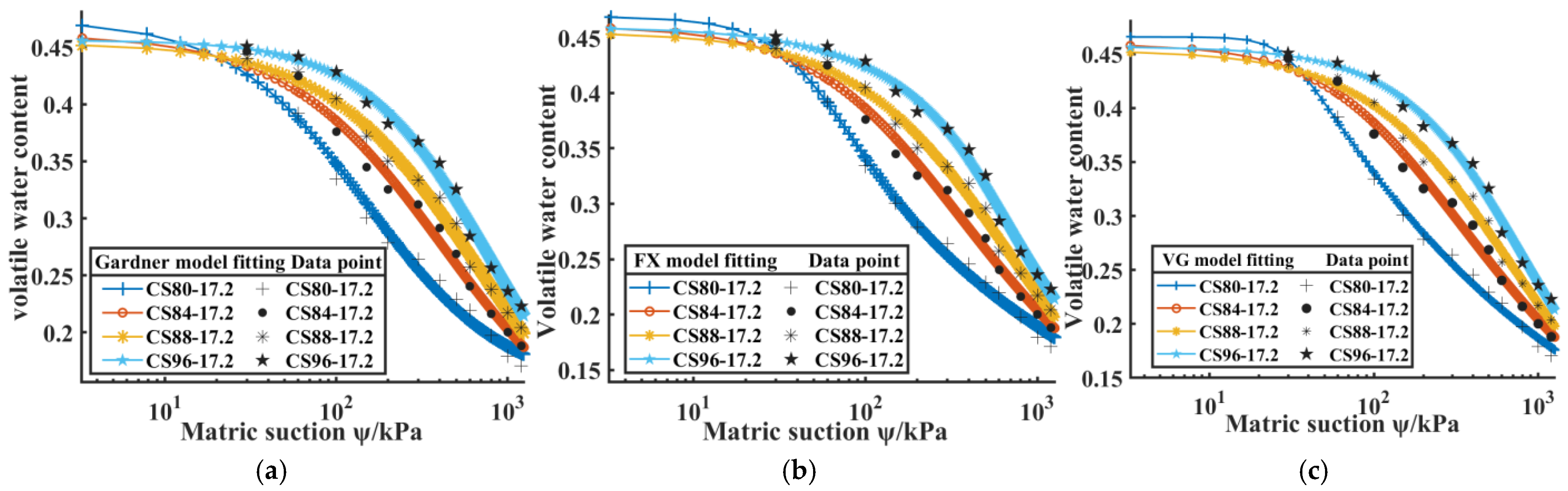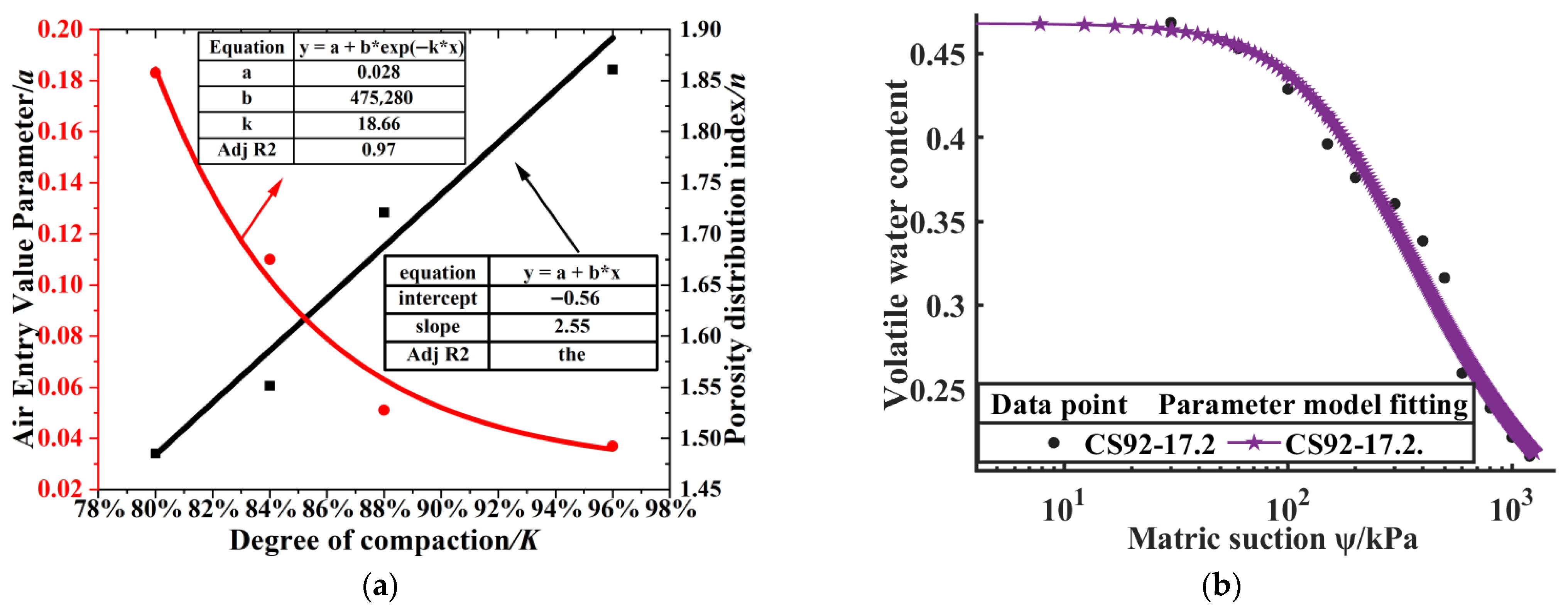 12] performed fitting analyses on loess samples from the southern tableland of the Jing River in Jingyang County, Shanxi Province using the Fredlund–Xing model. Their findings indicated that as the dry density of the loess increased, the values of parameters