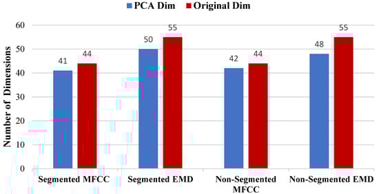 While the PCA-based reduction for MFCC features was limited due to their compact representation, EMD features showed a more significant reduction, particularly in the segmented configuration. These reduced feature vectors were subsequently used for classification tasks.