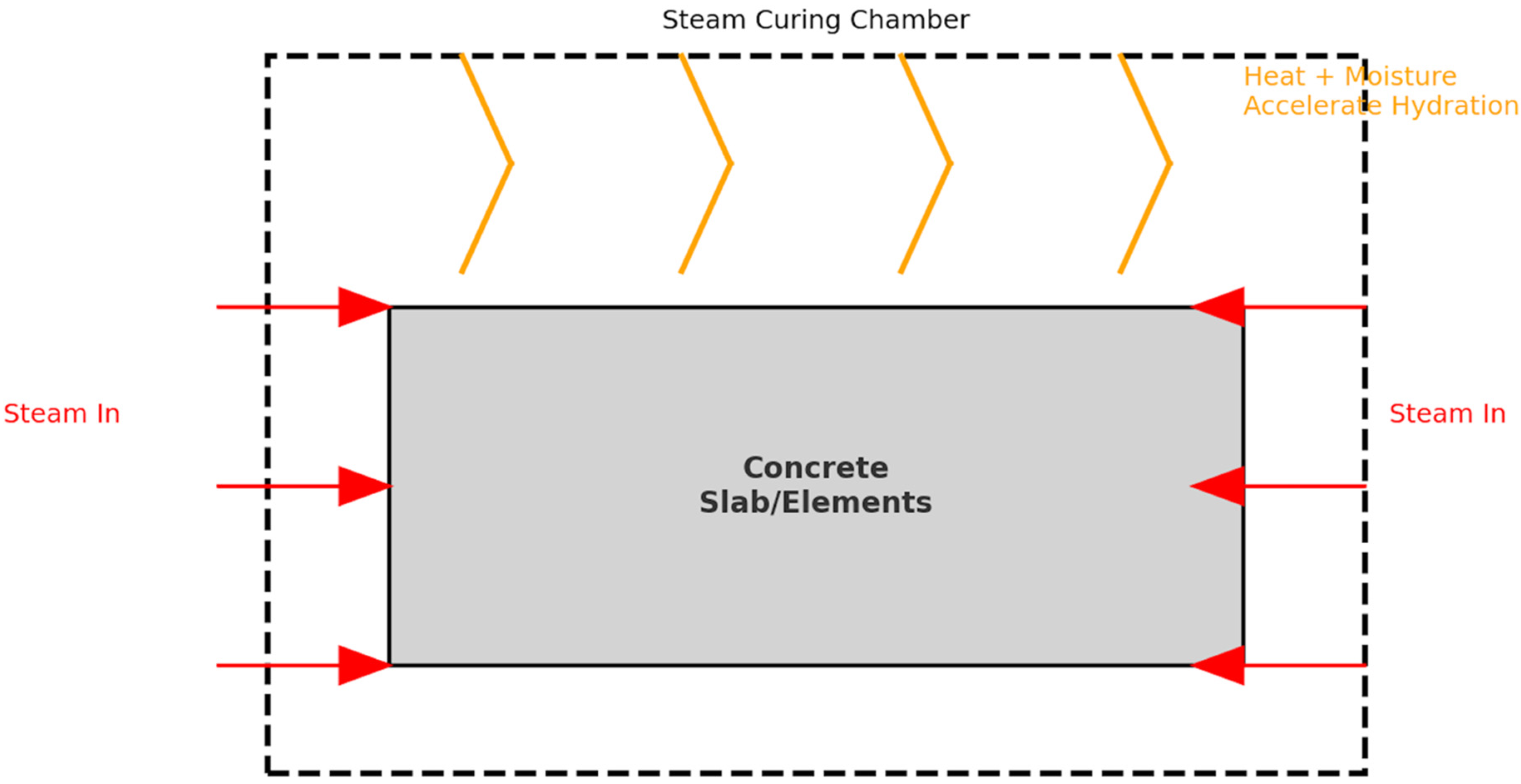 | GGBS | Precast elements | 60–90 | 1–7 days | Higher temperatures reduce strength and increase porosity | [45] |