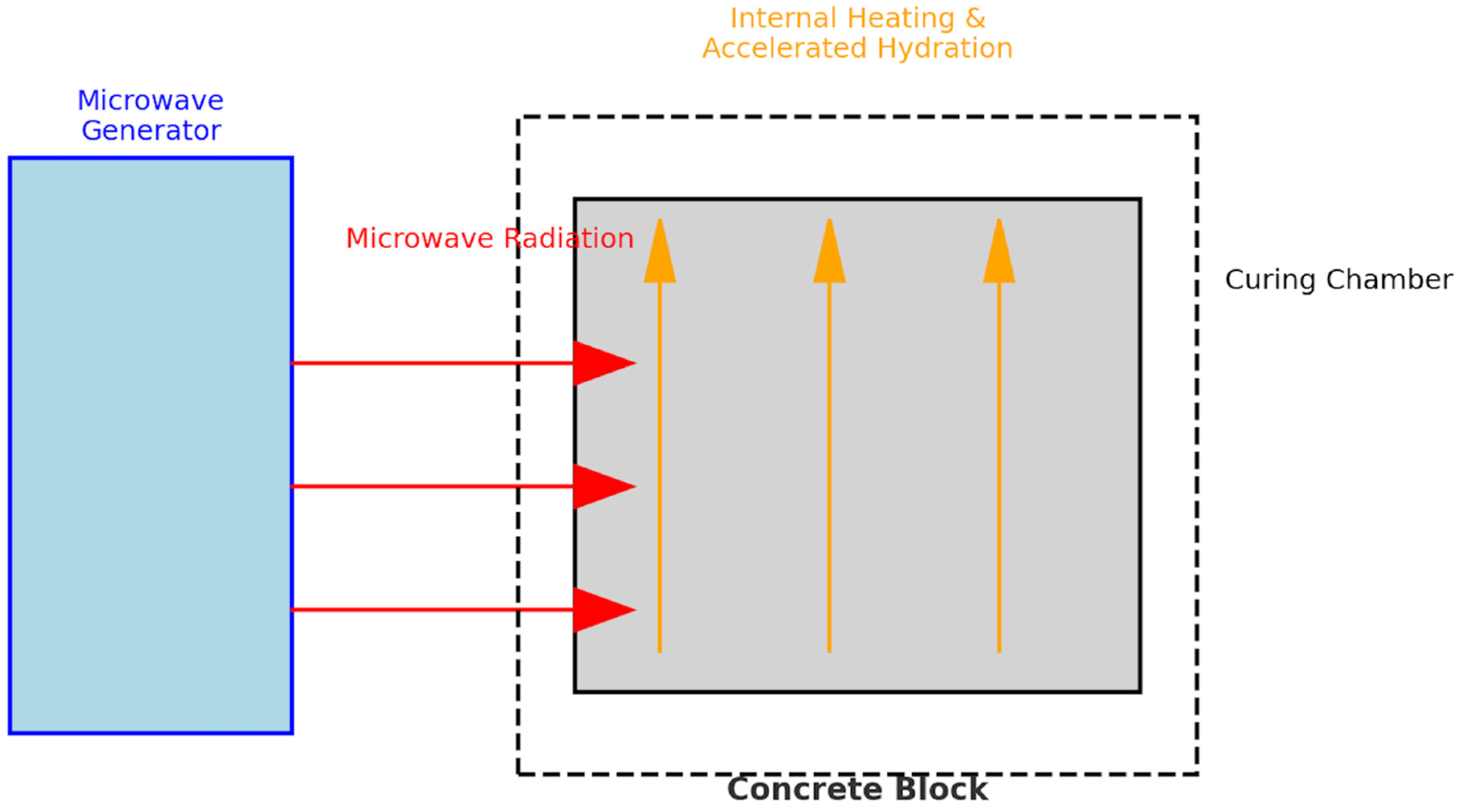 - Makul, N.; Rattanadecho, P.; Pichaicherd, A. Accelerated microwave curing of concrete: A design and performance-related experiments. Cem. Concr. Compos. 2017, 83, 415–426. [Google Scholar] [CrossRef]