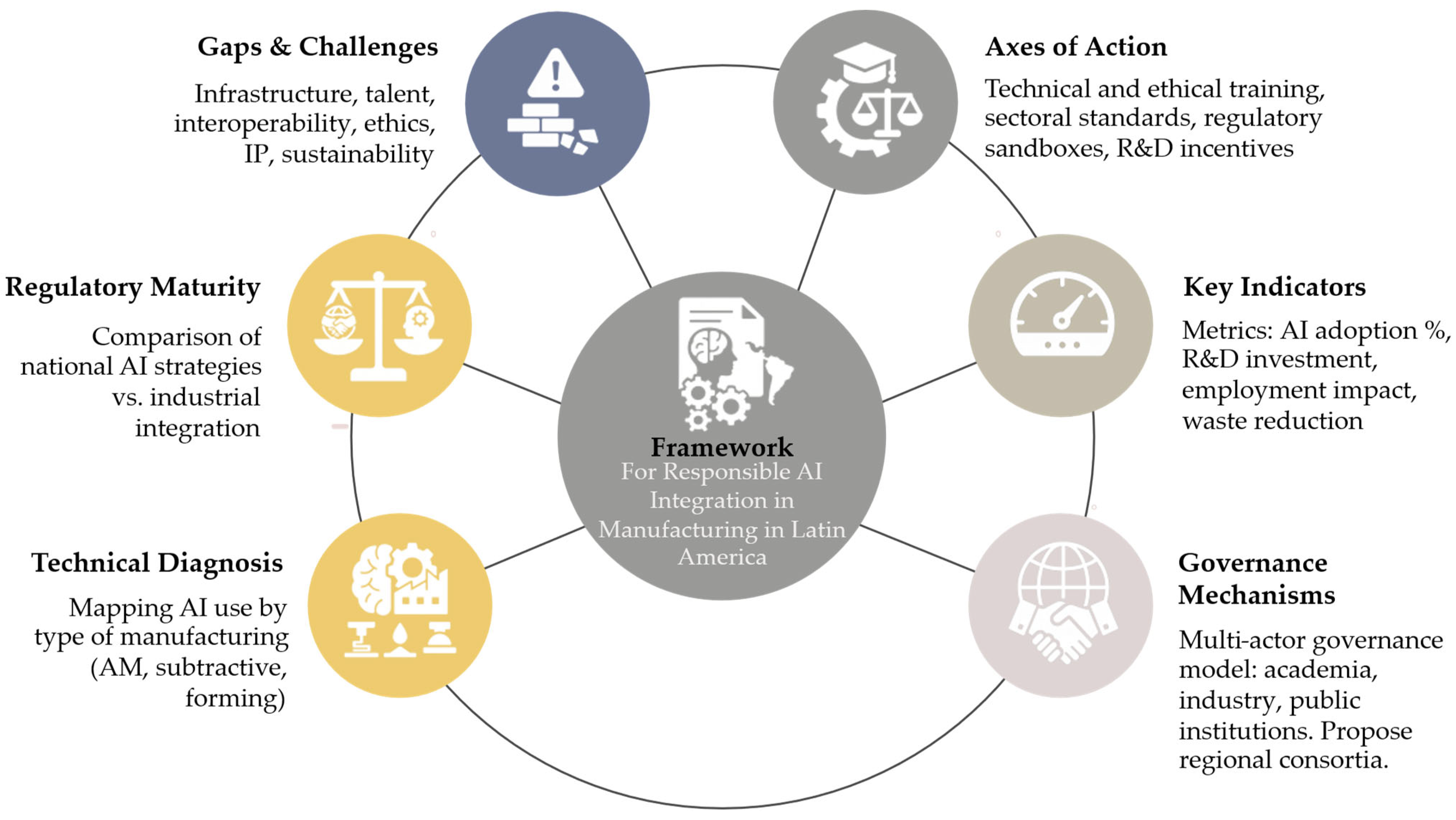 APA StyleOrtega-Del-Rosario, M. D. L. A., Caballero, R., Domínguez, M. A. M., Lescure, R., Noguera, J. C., Jaén-Ortega, A. A., & Castaño, C. (2025). AI-Enhanced Manufacturing in Latin America: Opportunities, Challenges, Applications, and Regulatory Policy Frameworks for Intelligent Production Systems. Applied Sciences, 15(20), 11056. https://doi.org/10.3390/app152011056
