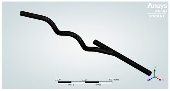 Nevertheless, this deviation remains localized to a single outlet. At the same time, the inlet velocity was reproduced with 0% difference, and pressure validation exhibited discrepancies below 5%, both of which fall within acceptable CFD accuracy ranges reported in the literature. The accuracy of the simulation in this domain is validated by the secondary 90° outlet, which demonstrates a strong correlation between the literature value of 1.20 m/s and the CFD result of 1.2009 m/s. The discrepancy was found to be 0.0749%.