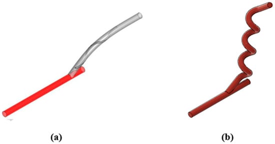 - Paul, M.C.; Larman, A. Investigation of Spiral Blood Flow in a Model of Arterial Stenosis. Med. Eng. Phys. 2009, 31, 1195–1203. [Google Scholar] [PubMed]
