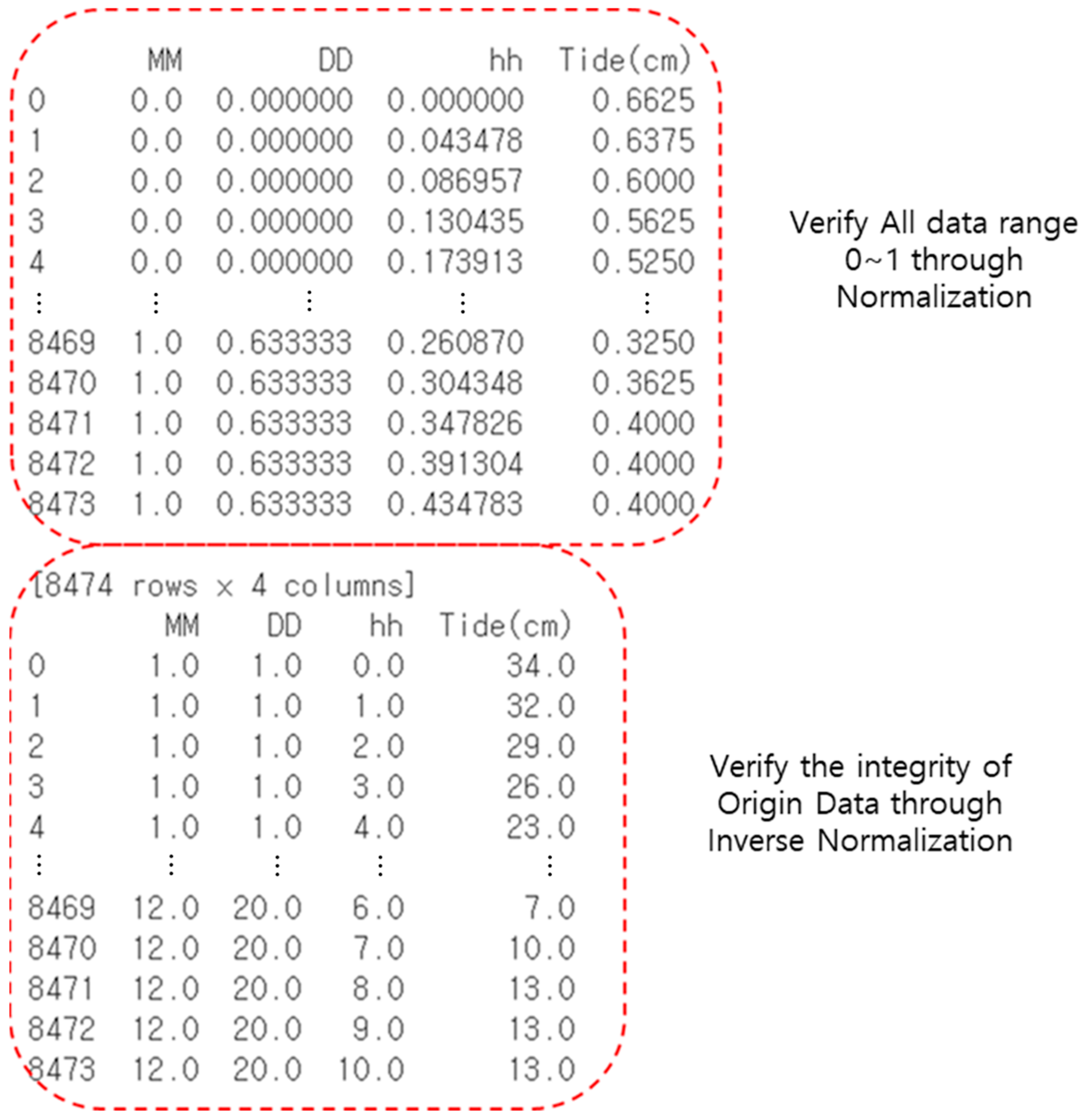 Figure 5. Normalization scales all input features to the 0–1 range for model training, while inverse normalization verifies the accurate recovery of the original dataset.
