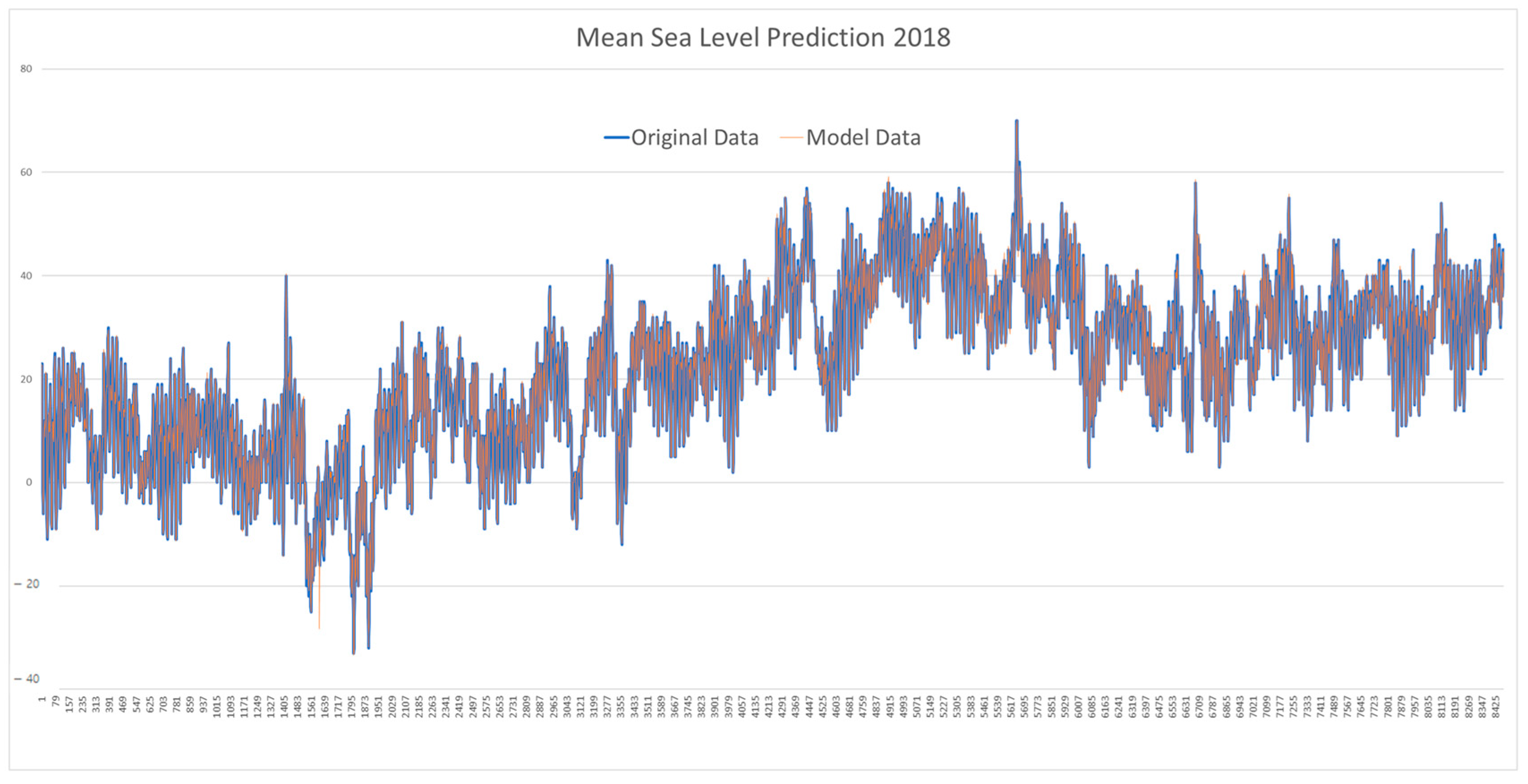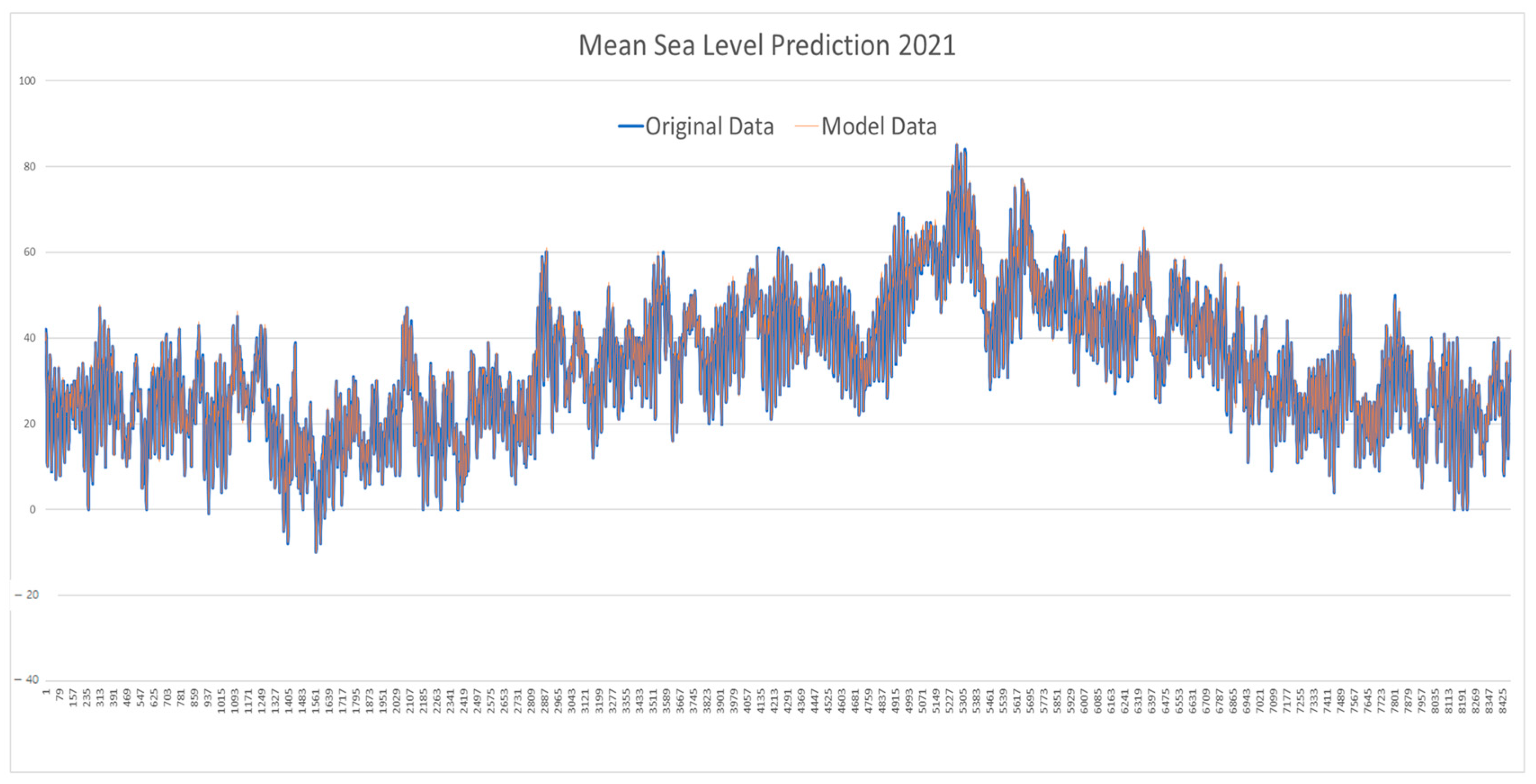 The predictive performance of the two models was compared over the 2000–2018 period, and the model with relatively higher accuracy was then applied to forecast annual mean sea level for 2018, 2019, 2020, and 2021 using the same approach.