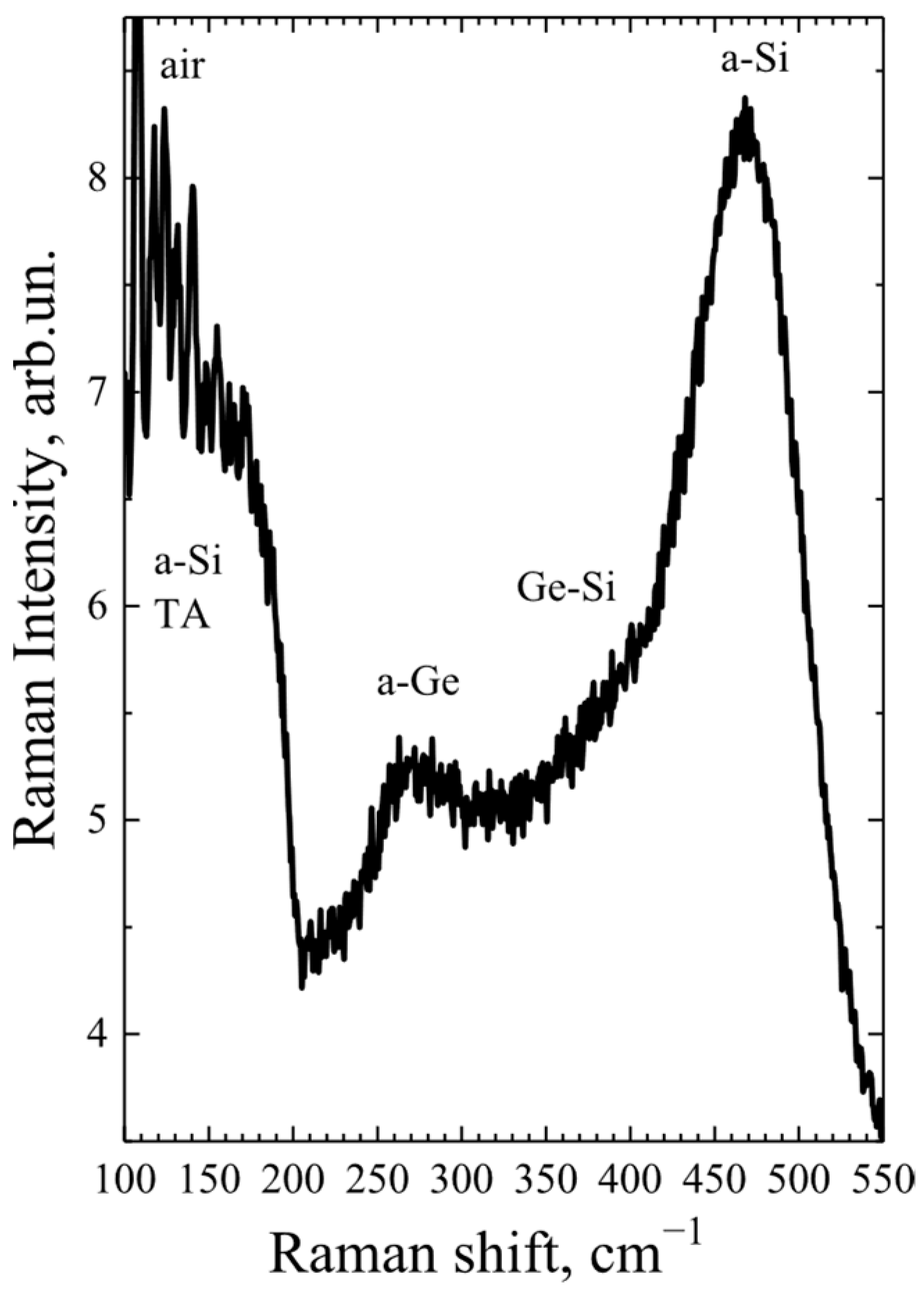 - Hao, Z.; Kochubei, S.A.; Popov, A.A.; Volodin, V.A. On Raman scattering cross section ratio of amorphous to nanocrystalline germanium. Solid State Commun. 2020, 313, 113897. [Google Scholar] [CrossRef]
